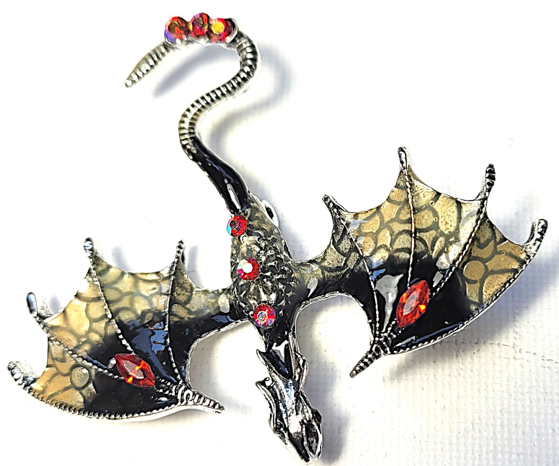 CREAM ENAMEL, DRAGON BROOCH/PENDANT. JEWELERY