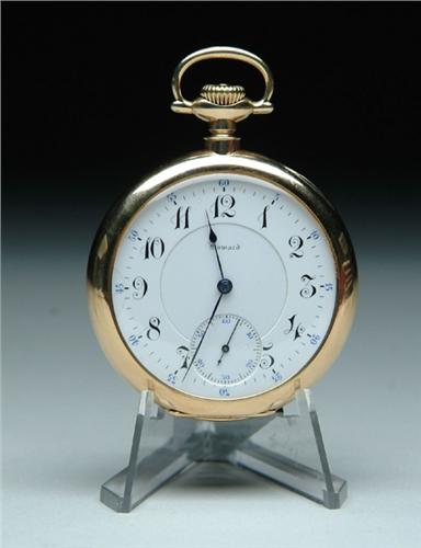 16 SIZE HOWARD POCKET WATCH. 23 jewel, 14k solid gold Howard, plain polished case, pendent set. Original Howard double sunk dial. SN 1078641. CONDITION: Very good, running. 9-25864