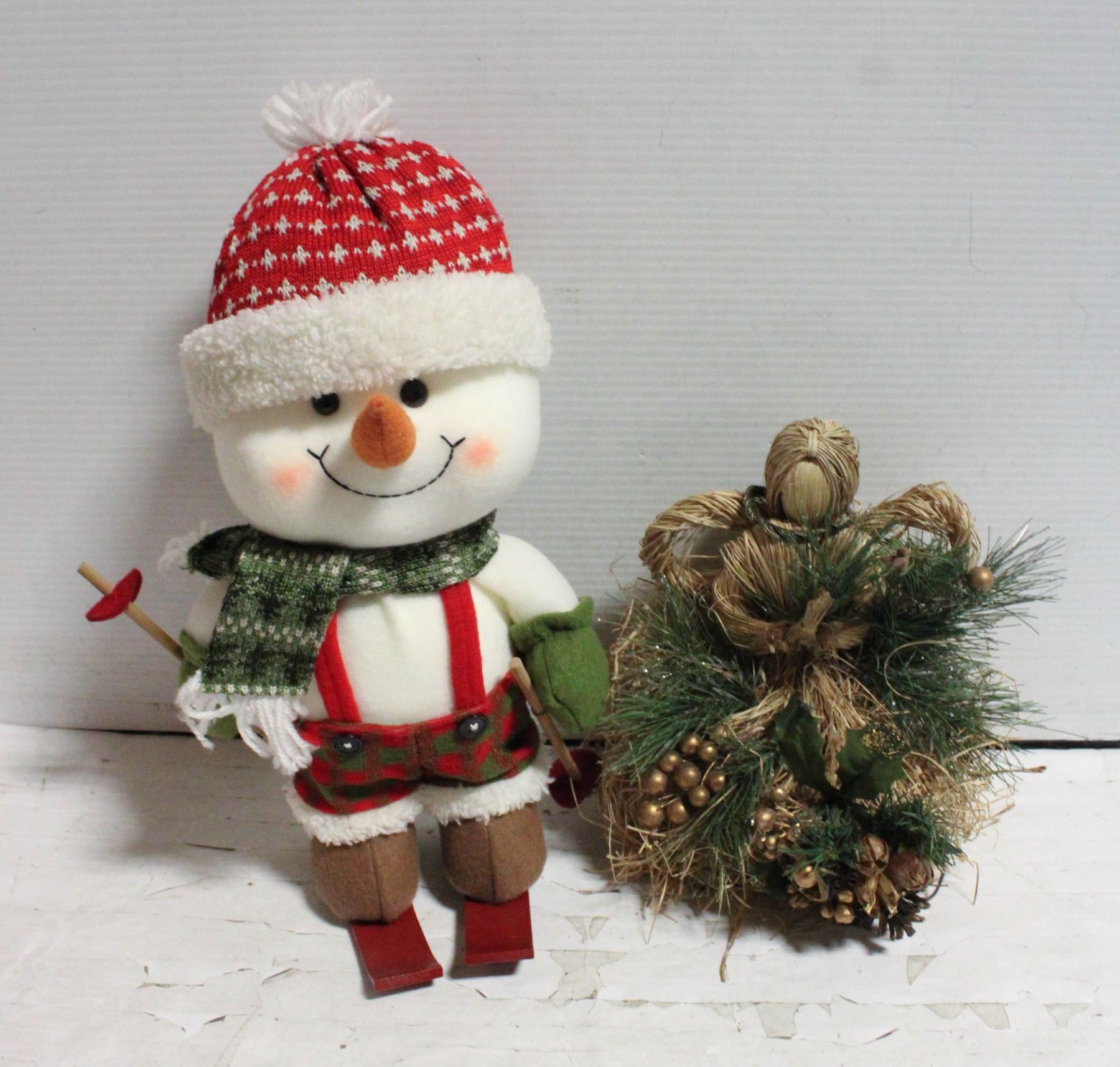 16" SNOWMAN ON SKIS,HANDCRAFTED WICKER