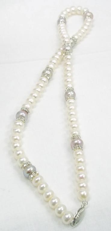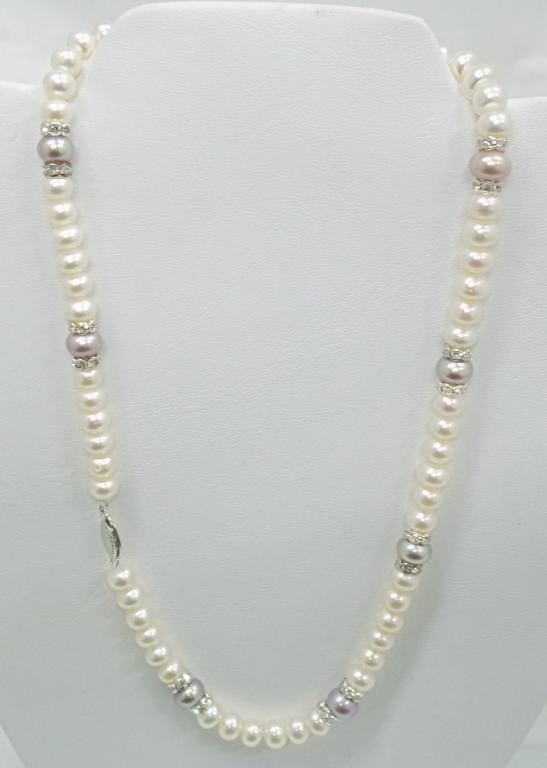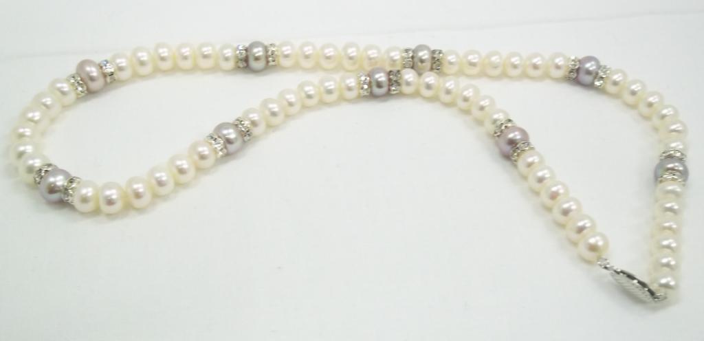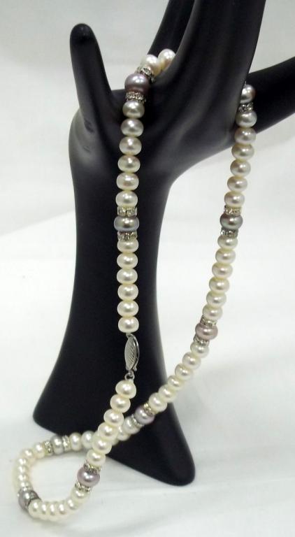 8mm fresh water pearls and just enough roundells to add the perfect accent make up this beautiful 16" necklace. The retail value is $880-.