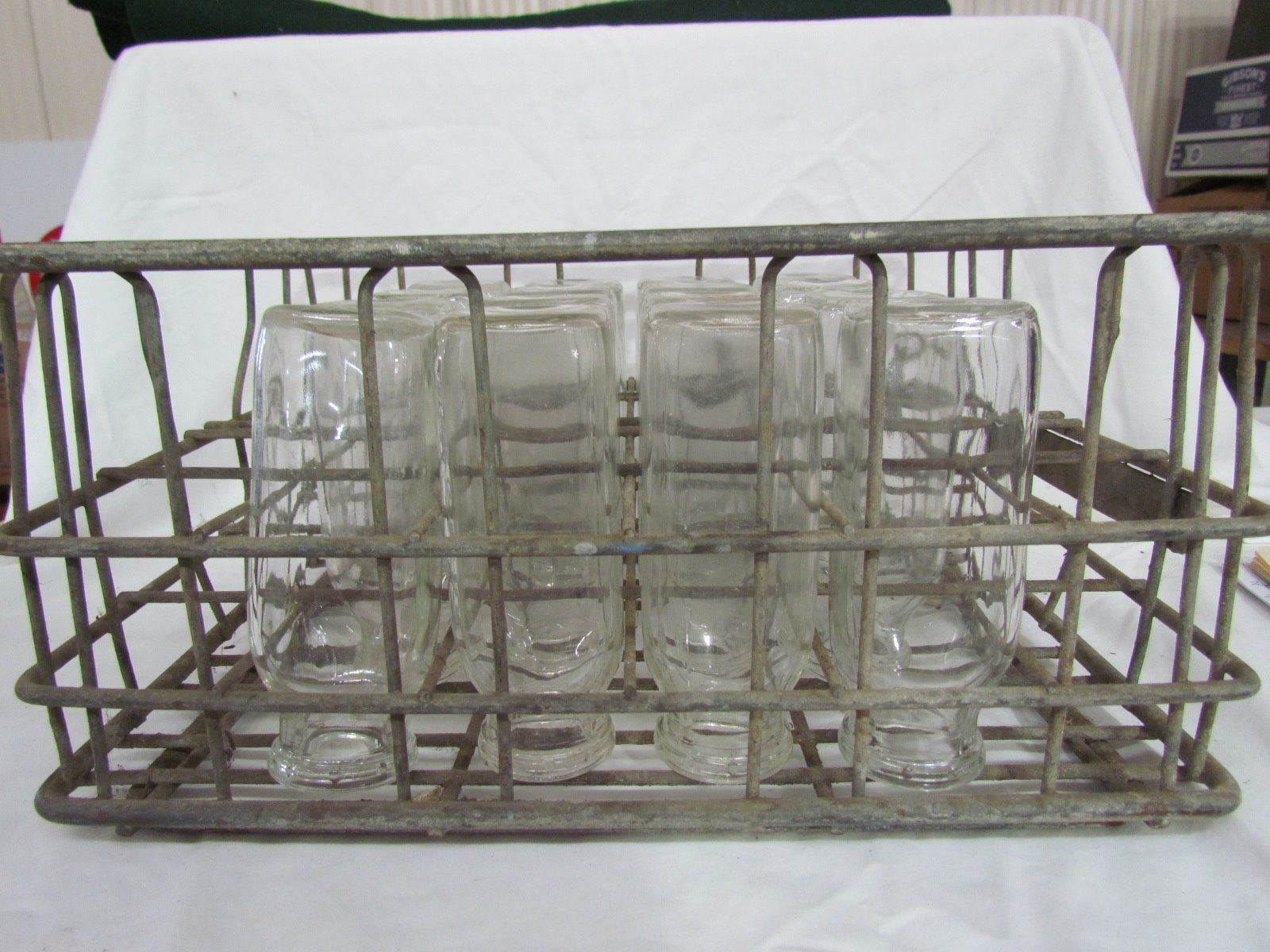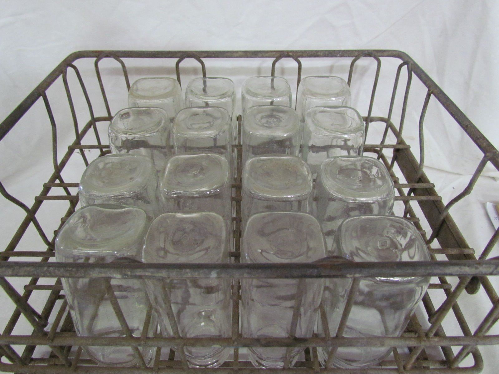 16 Small Milk bottles in crate