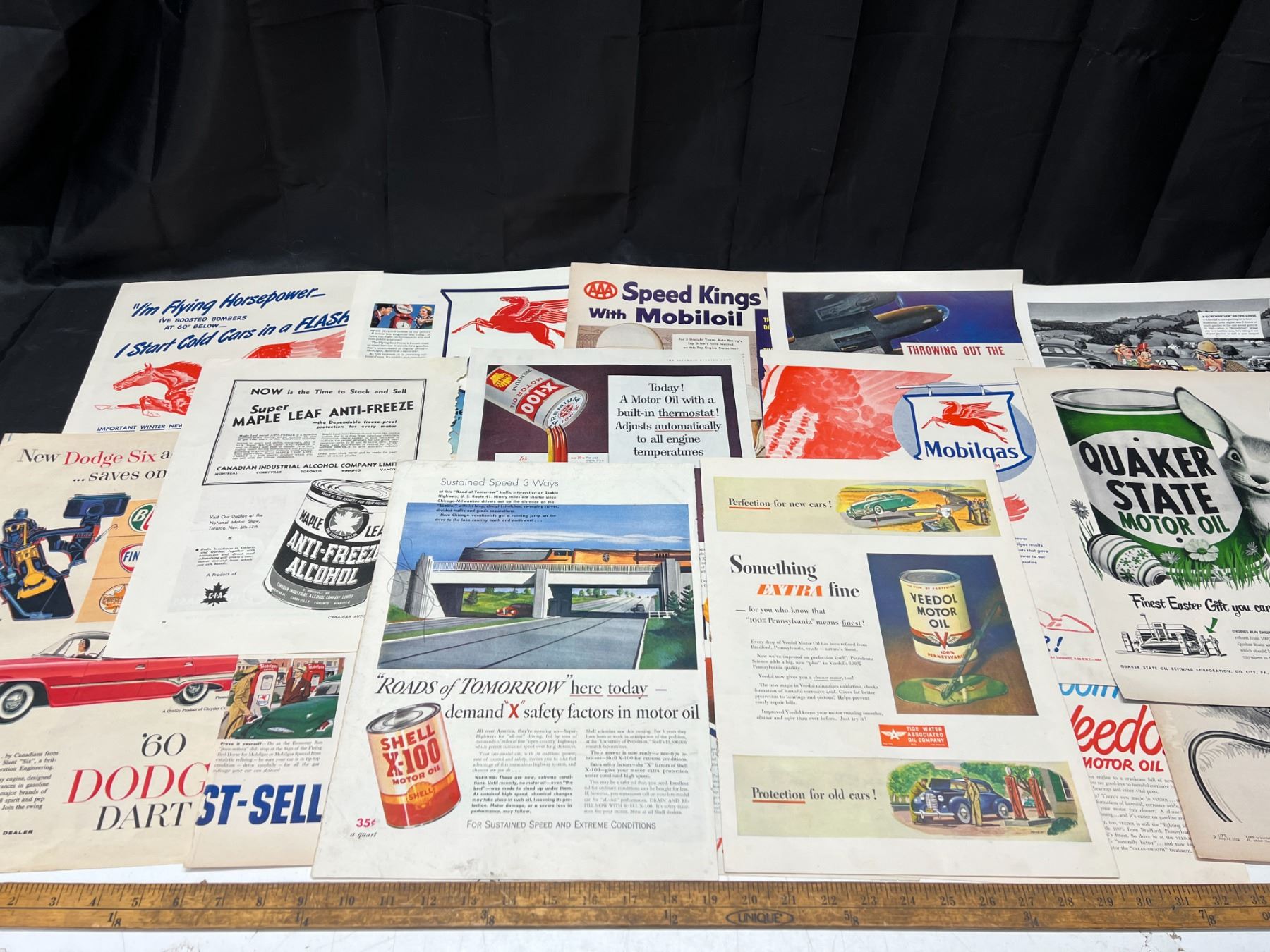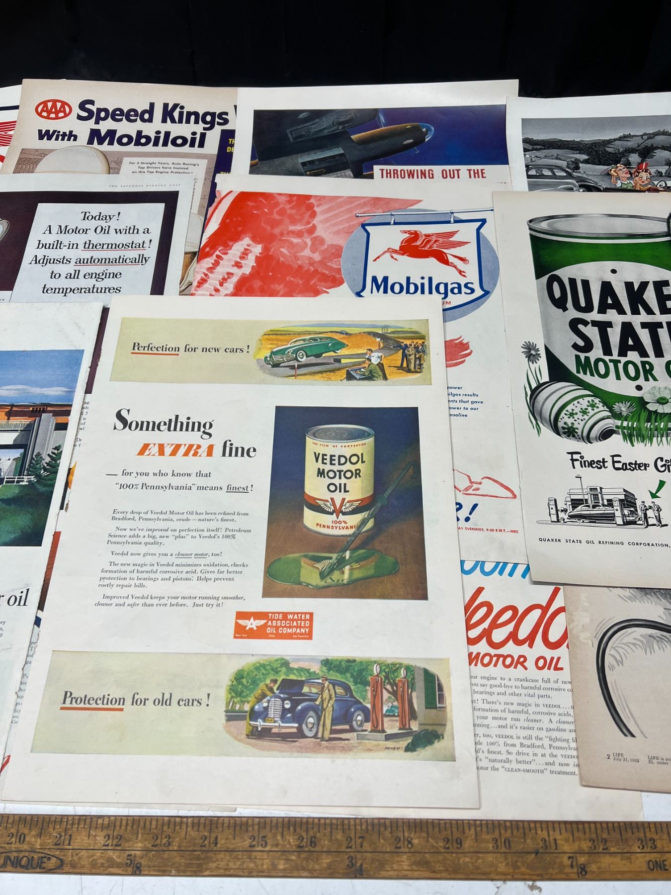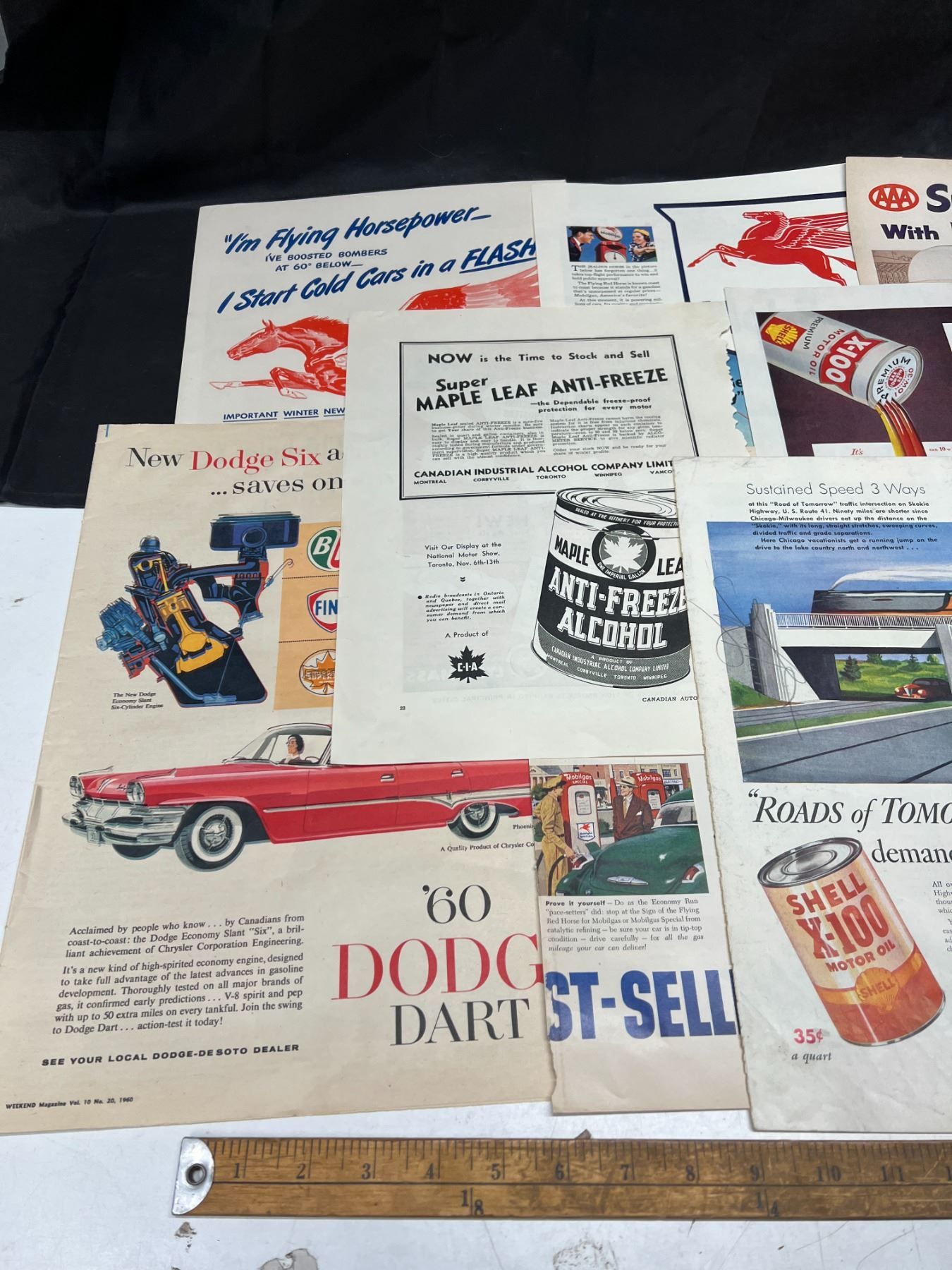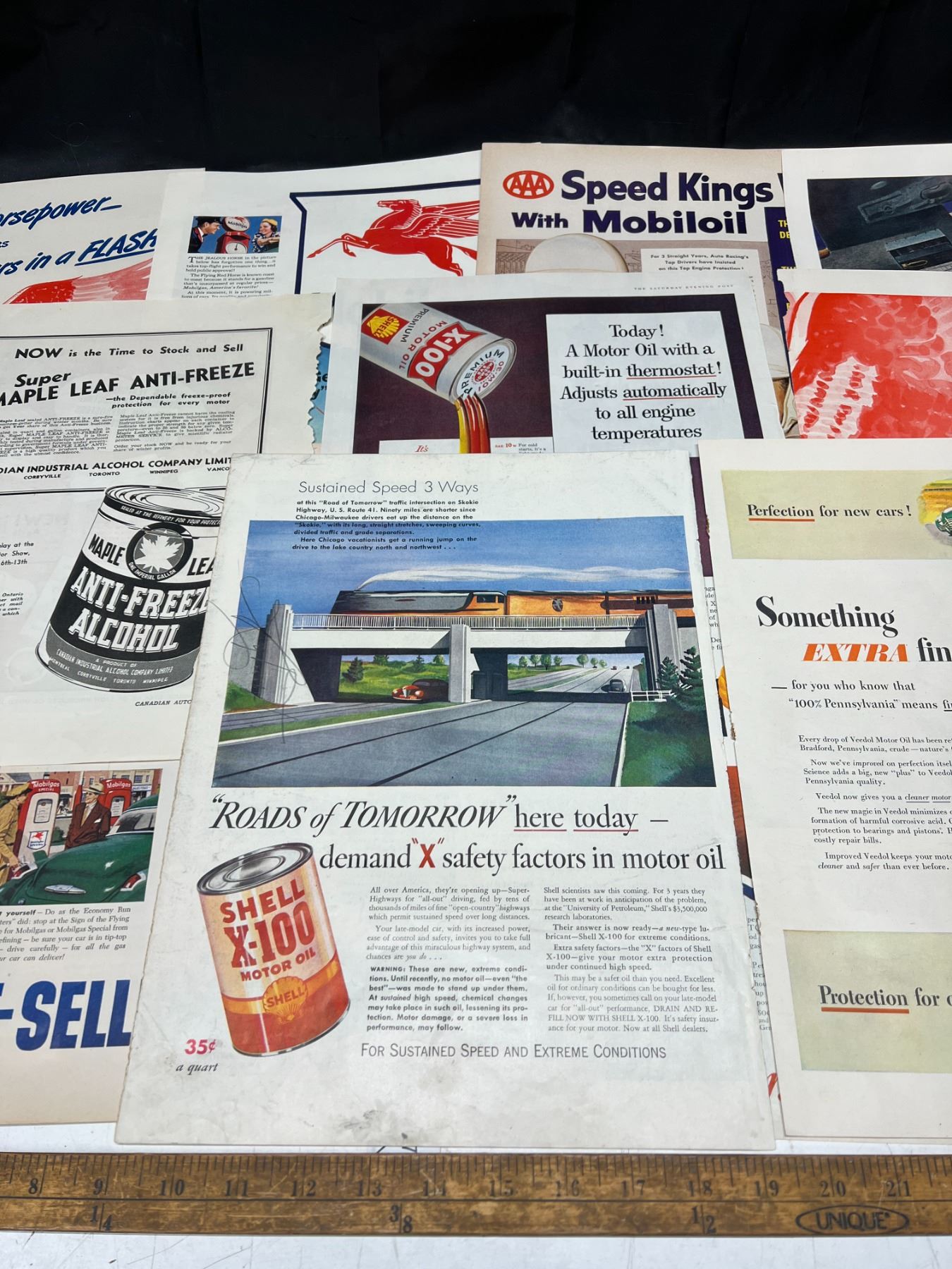 (16) Vintage old ad. Oil + gas Mobil gas, Mobil oil, Texaco, Shell, AAA, Maple Leaf, Quaker State