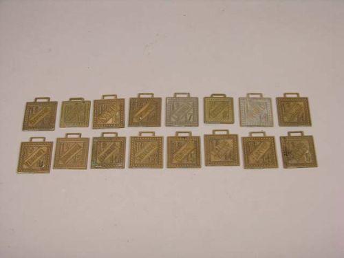 16 watch fobs - from early 1900's for various colleges. NYU, LeHigh, Vermont, Allegheny, Clemson and others. All Ex. cond.