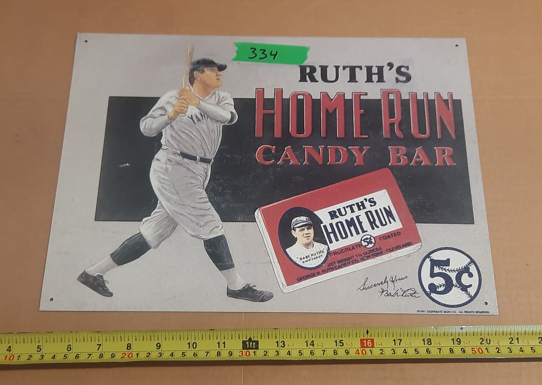16" X 11" Tin Sign Ruths Home Run Candy Bar 5c