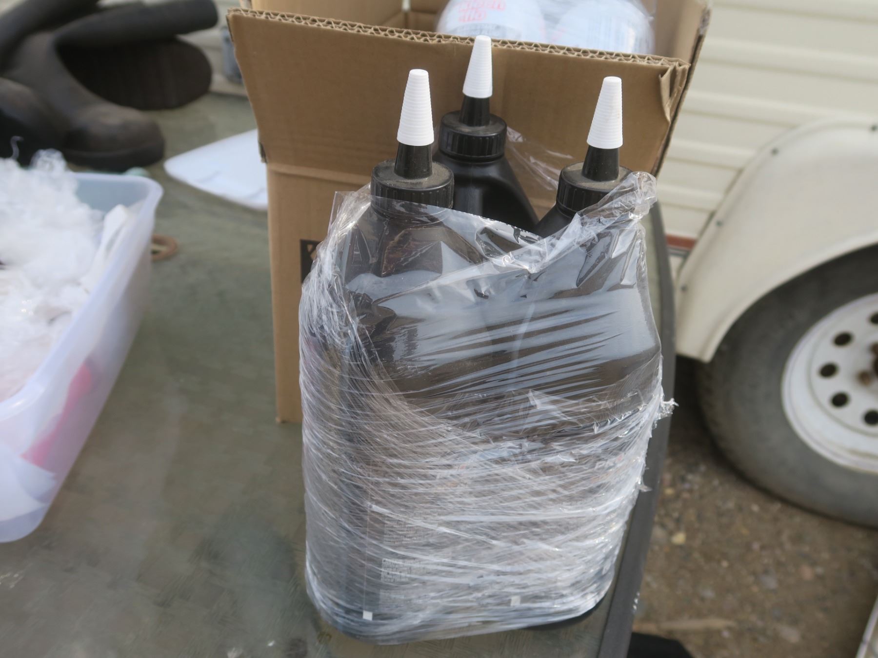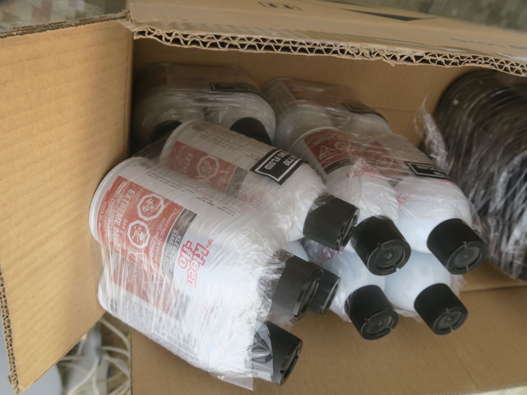 16 bottles of starting fluid 7 bottles of gear oil
