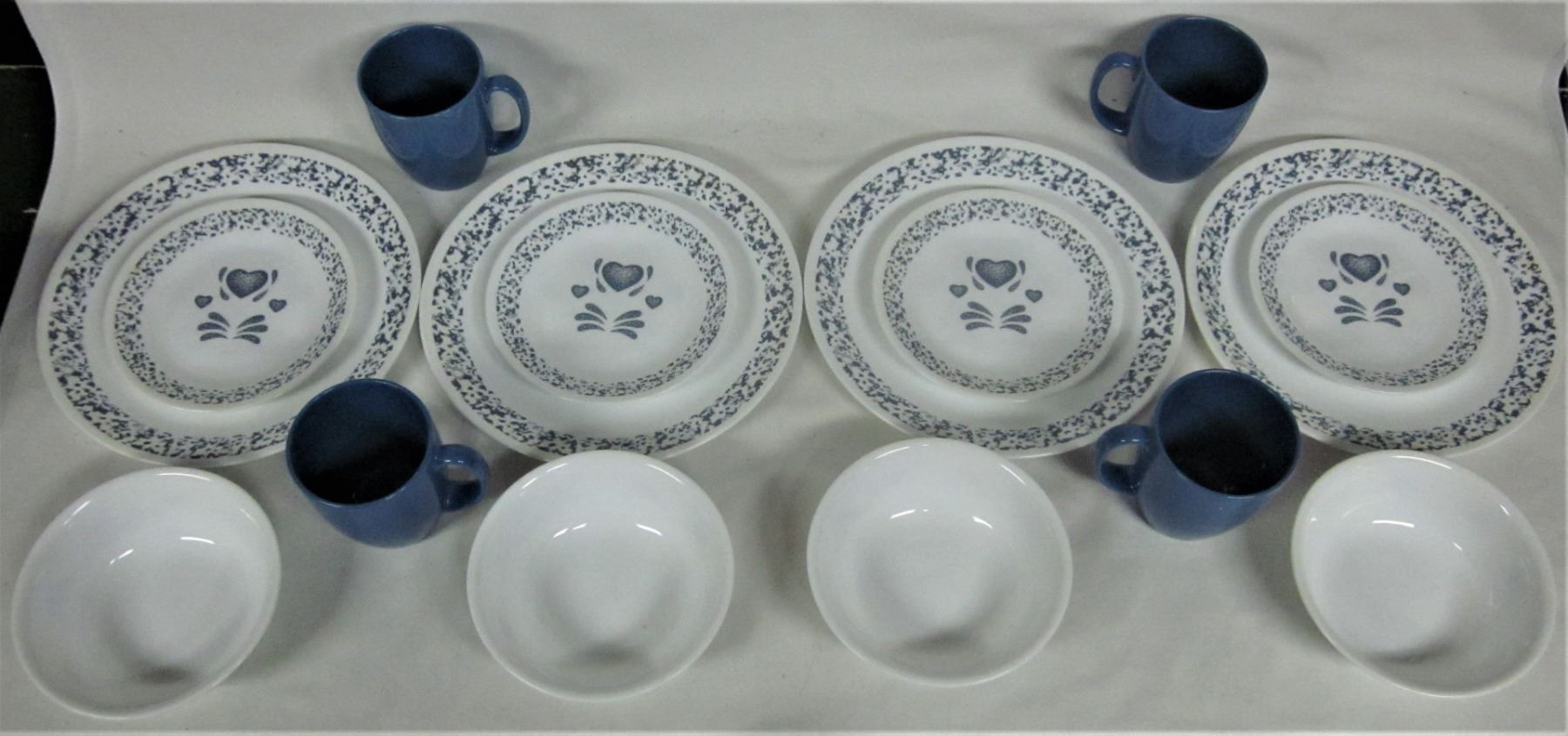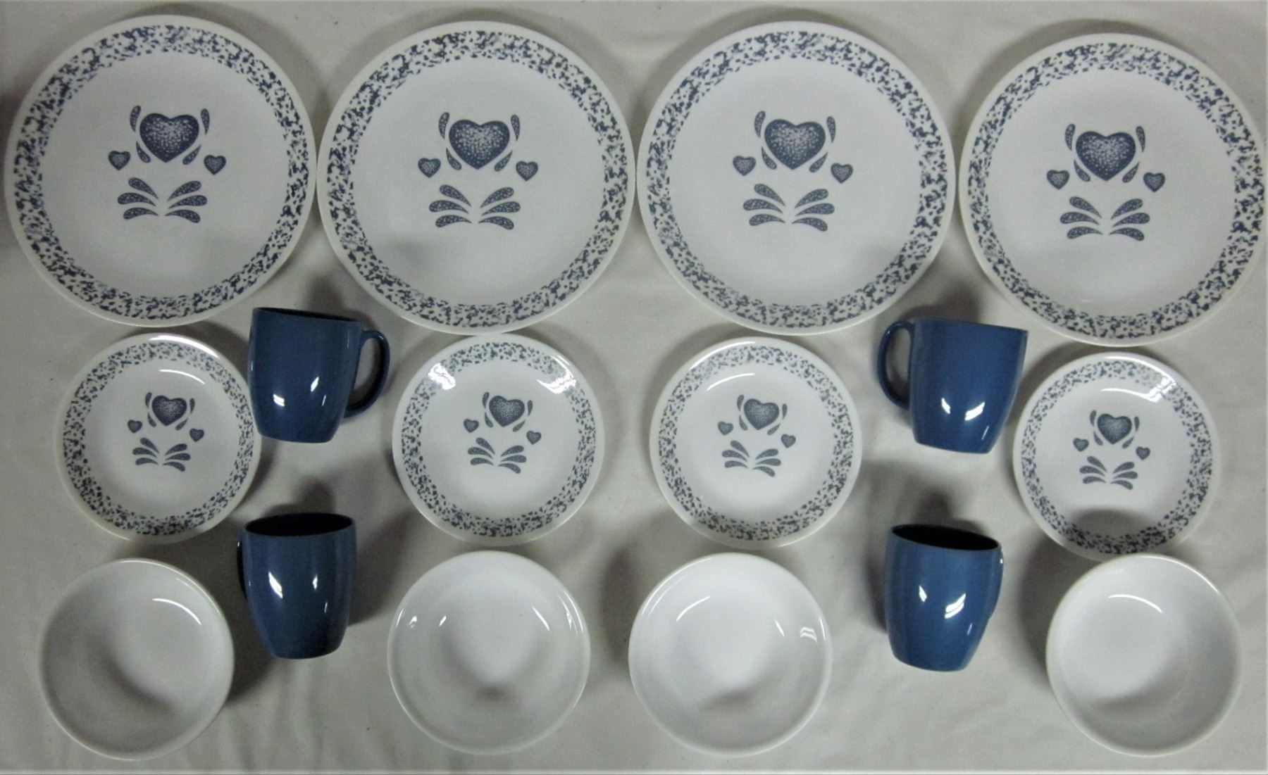 16 pc. Set Corelle "discontinued" - Blue Heart Pattern Stoneware Set