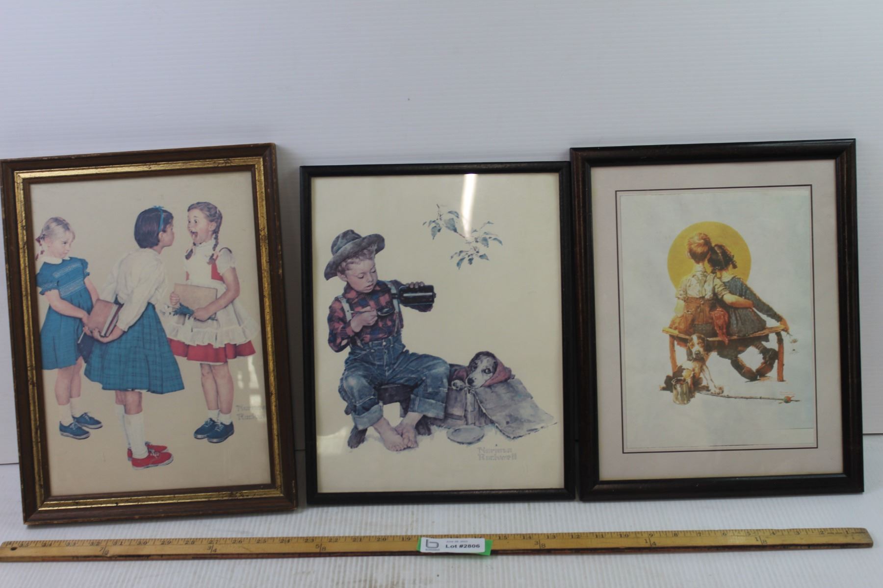 16 x 12 Picture of Girls + 15 x 12 Little Boy and His Dog Picture + 16 x 12 Boy and Girl on Bench Picture