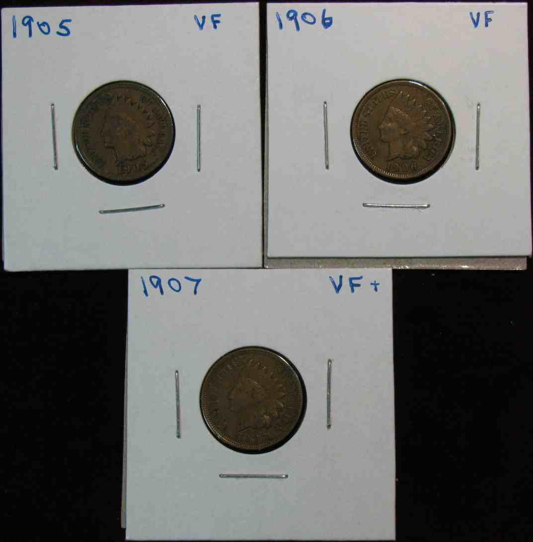 160. 1905, 06, & 07 Indian Cents. All VF.