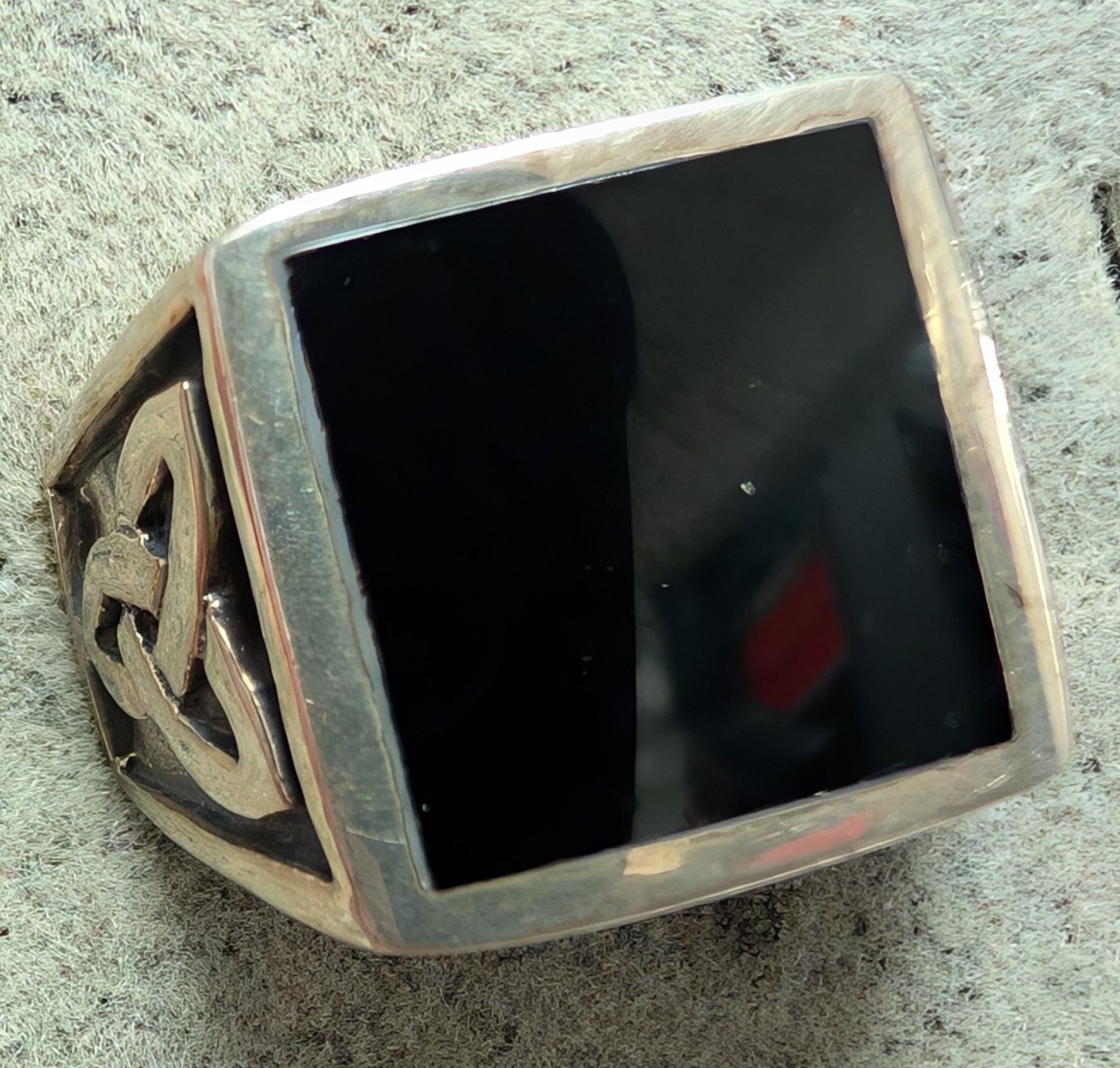 $160, SILVER(13g), BLACK ONYX RING, size , appraised/retail value $160, ring resizeable for $50