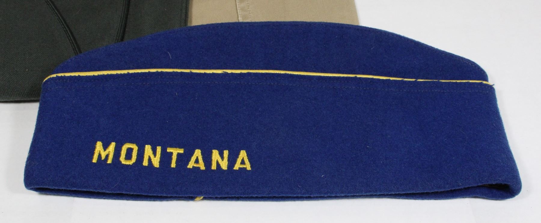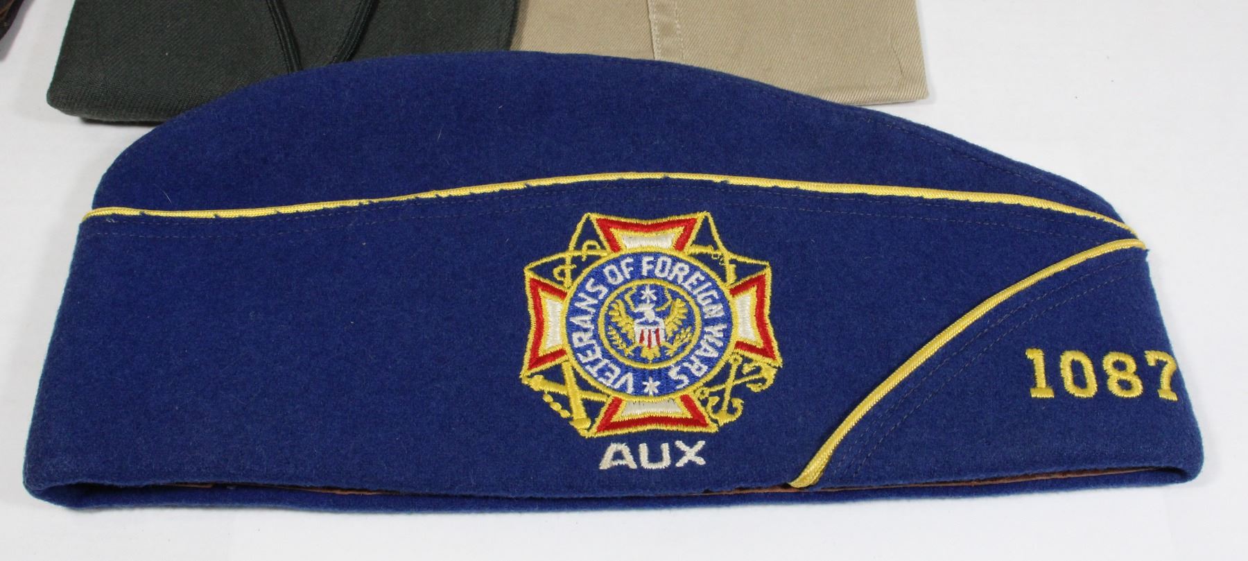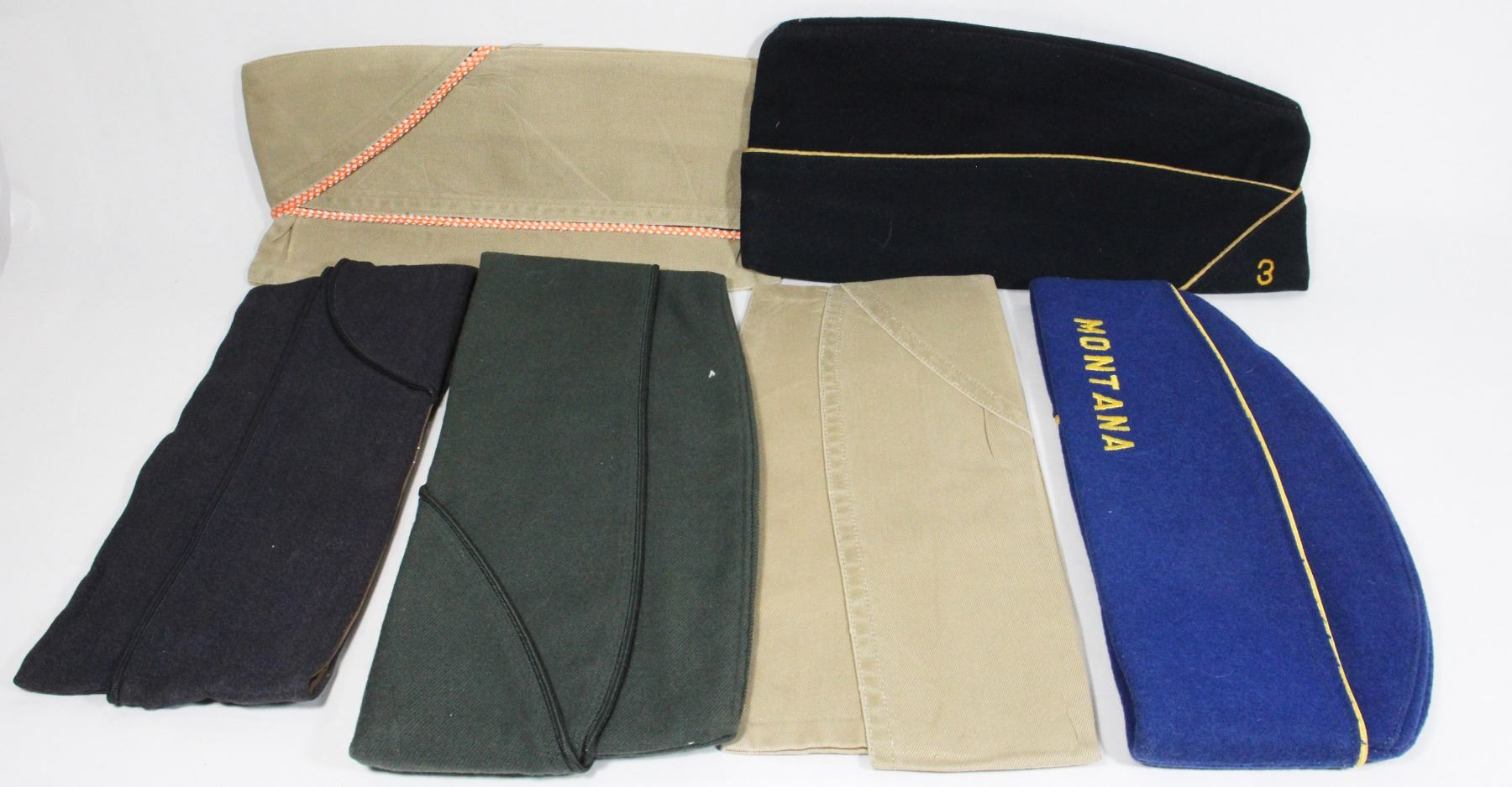 INCLUDES 6 WEDGE CAPS, TWO MONTANA AMERICAN LEGION/VETERANS OF FOREIGN WARS CAPS, TWO TAN COLOURED CAPS, AND GREEN/ BLUE CAPS. 20TH CENTURY 1900'S UNITED STATES ARMY MILITARY FORCES ALLIES UNIFORM HEADGEAR