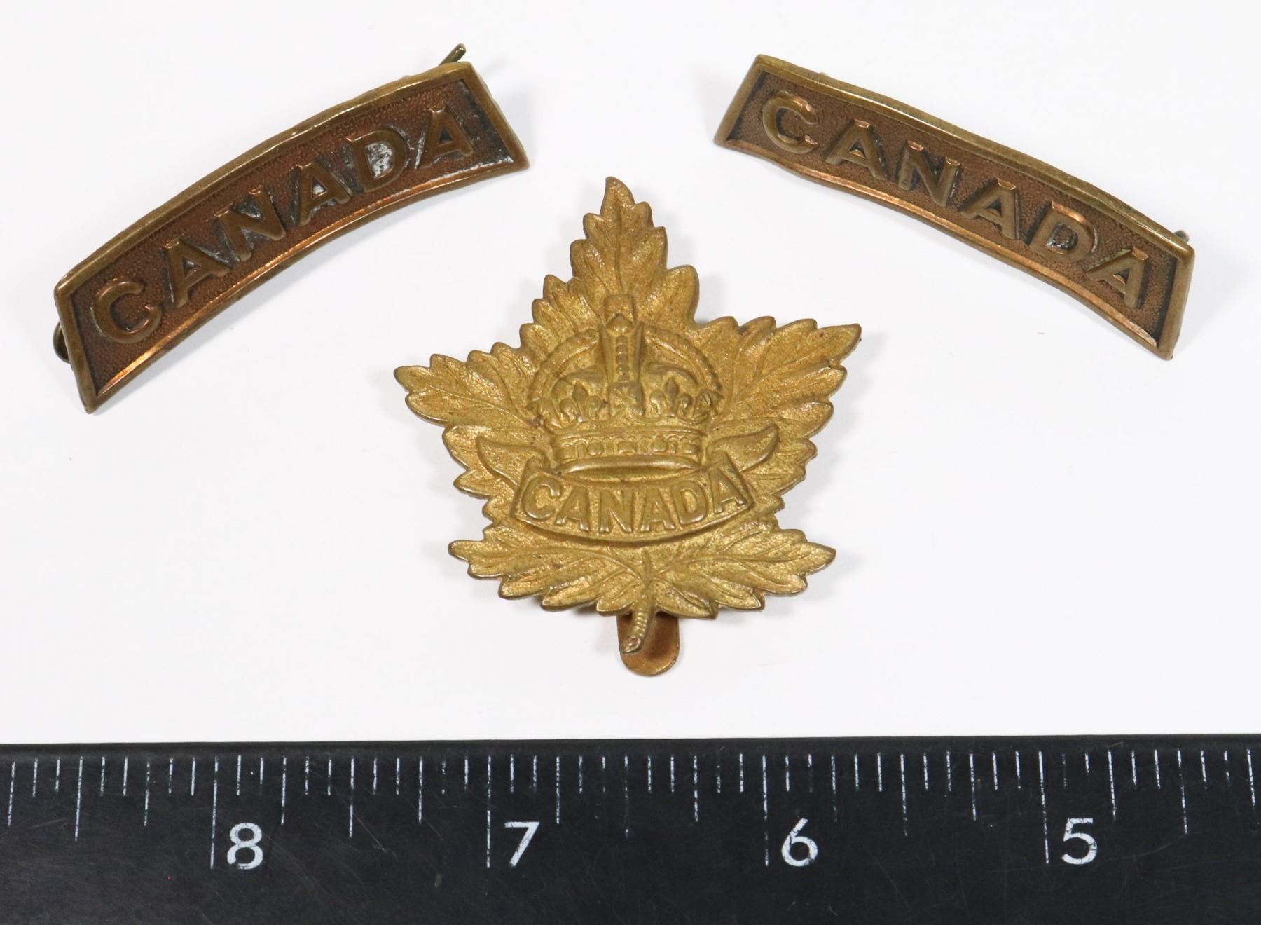 COMPLETE SLIDER FASTENER ON REVERSE, INCLUDES 2 SHOULDER TITLES BOTH MARKED W. SCULLY MONTREAL WORLD WAR ONE CEF CANADA CANADIAN ALLIED FORCES