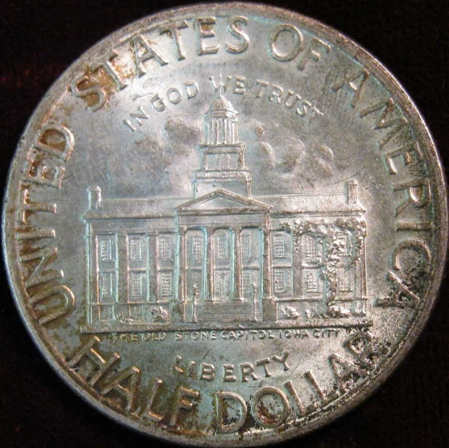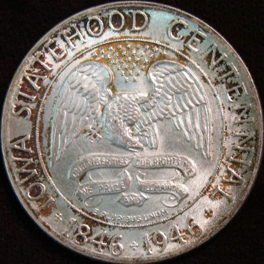 1601. 1946 Iowa Commemorative Silver Half Dollar. MS 68 original toned.