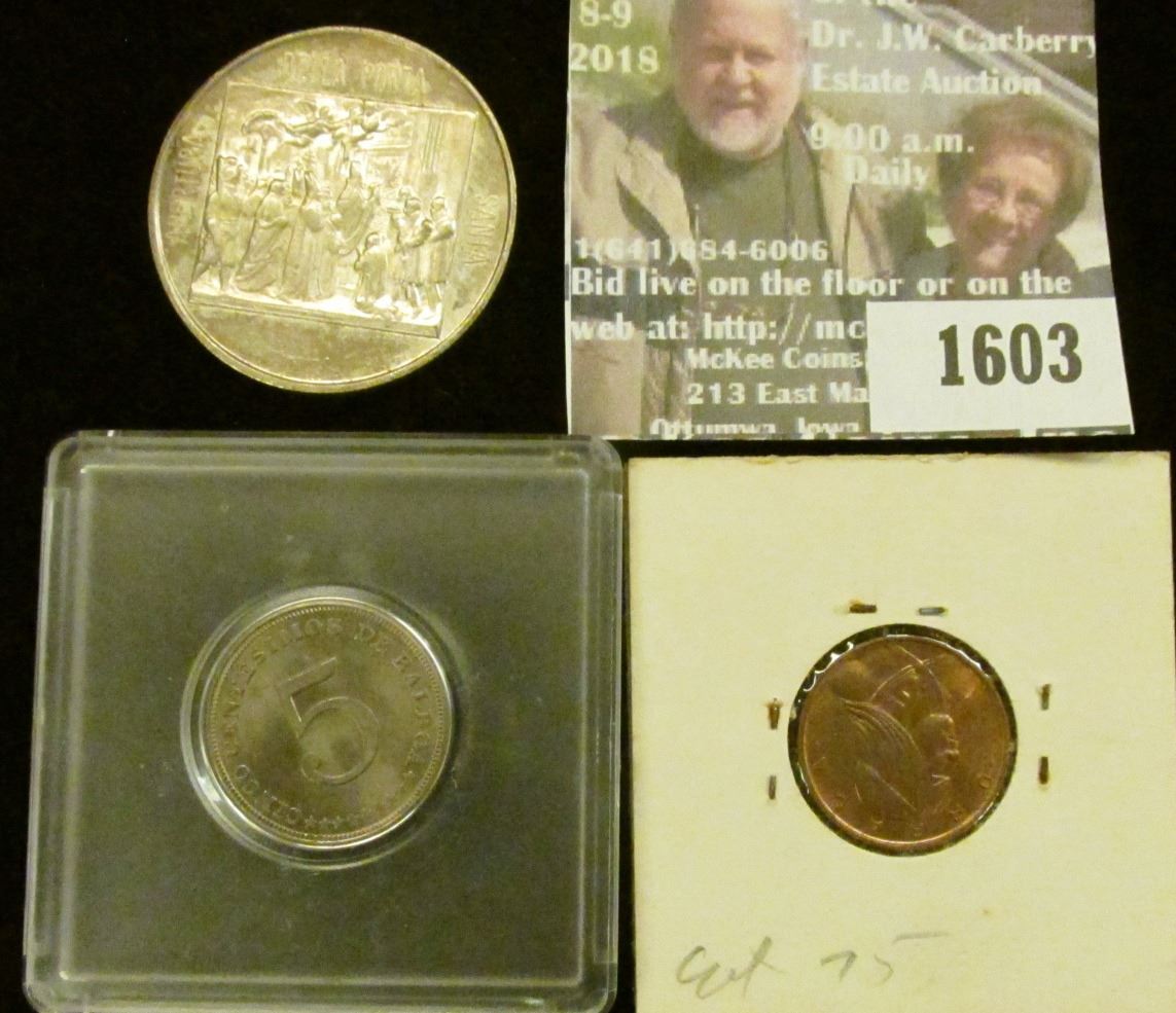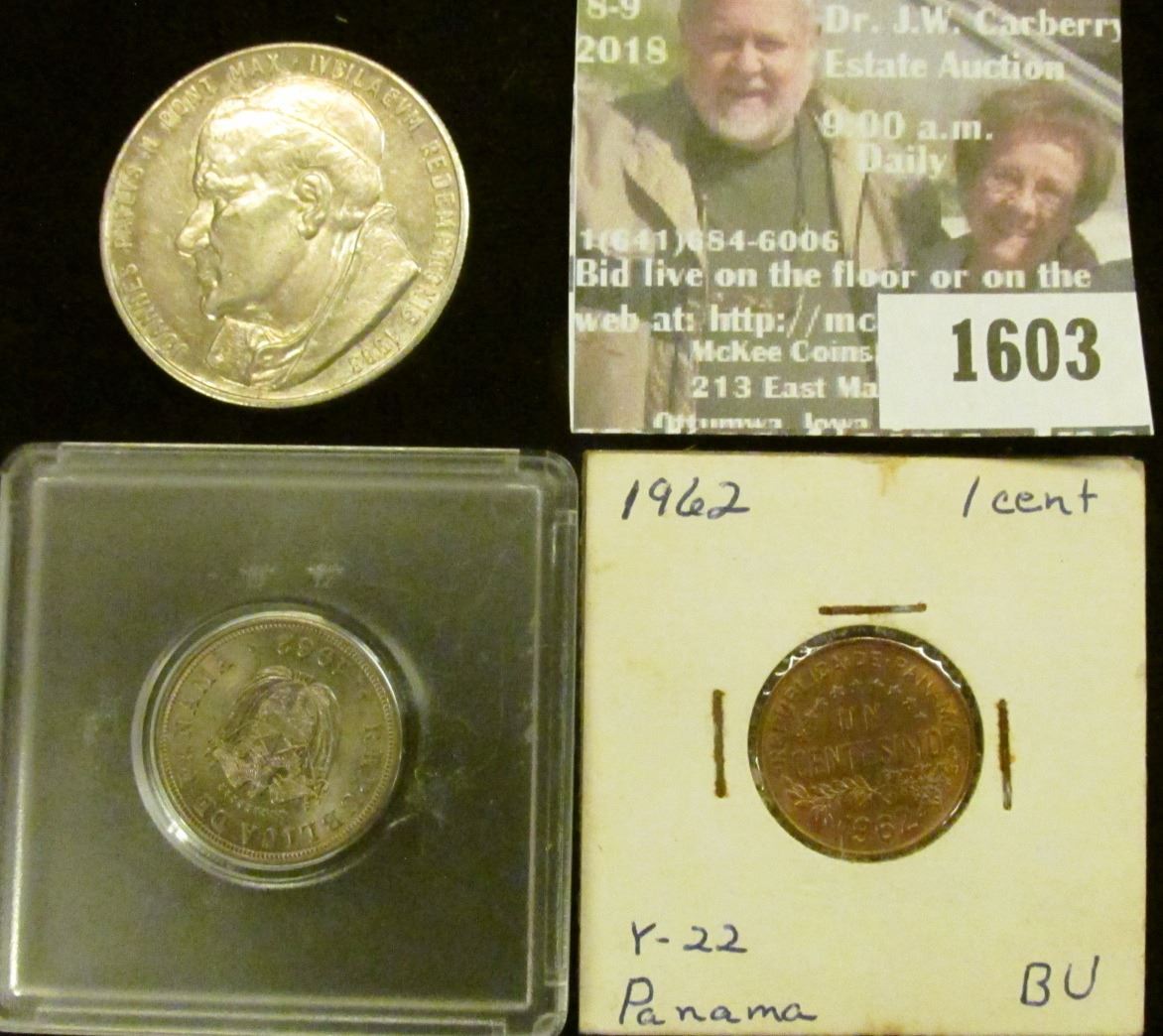 1962 Panama 1 Centesimos BU, 1962 Panama 5 Centesimos BU & Joannes Pavlvs II Pont. Max Ivbilaevm Redemptionis 1983 Silver Colored Proof Like Medal.