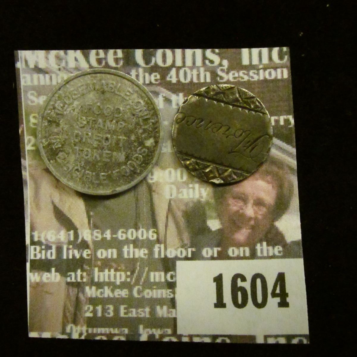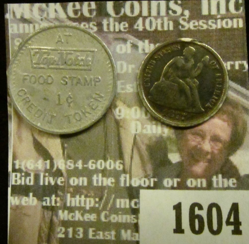 Love Token Florence on 1877 Liberty Seated Dime & TopNotch Food Stamp 1c Credit Token.