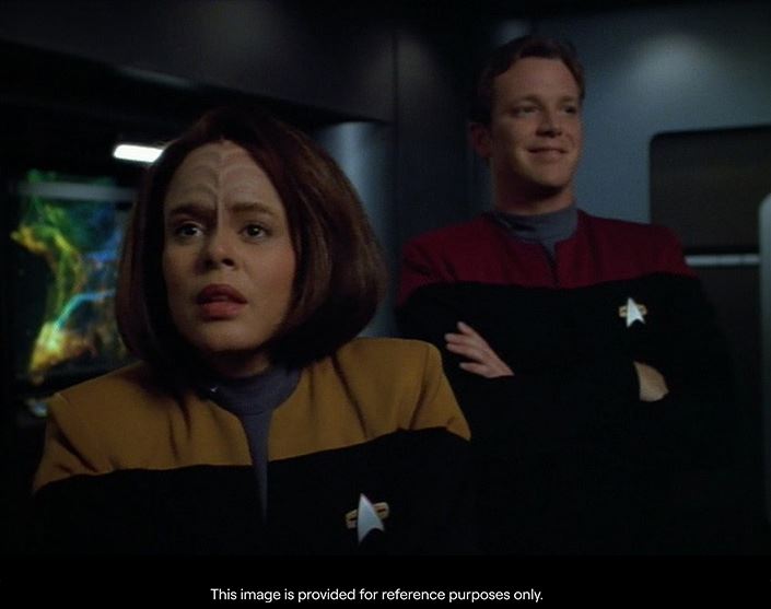 STAR TREK: VOYAGER (T.V. SERIES, 1995 - 2001) - B'Elanna Torres' (Roxann Dawson) Starfleet Operations Costume - B'Elanna Torres' (Roxann Dawson) Starfleet Operations costume from Star Trek: Voyager. Torres first donned her Operations-division uniform when she and her fellow Maquis joined the Starfleet crew of the starship Voyager, of which Torres quickly became Chief Engineer, and continued to wear it during their journey home from the Delta Quadrant through the rest of the series.