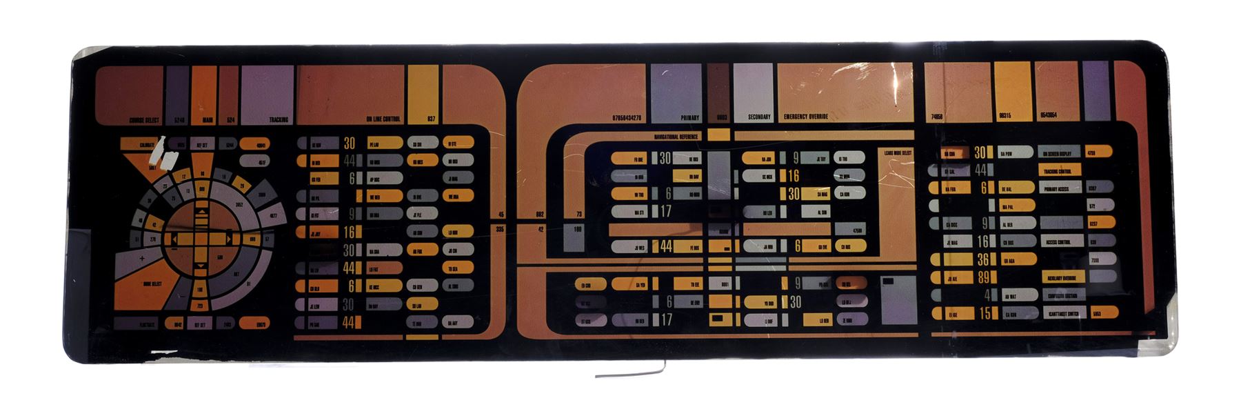 STAR TREK: VOYAGER (1995-2001) - Engineering LCARS Control Panel - An Engineering LCARS control panel from Star Trek: Voyager. Chief Engineer B'Elanna Torres (Roxann Dawson) and her team used LCARS (Library Computer Access and Retrieval System) controls designated for engineering use to monitor, identify, and solve technological issues that arose in Voyager's systems.