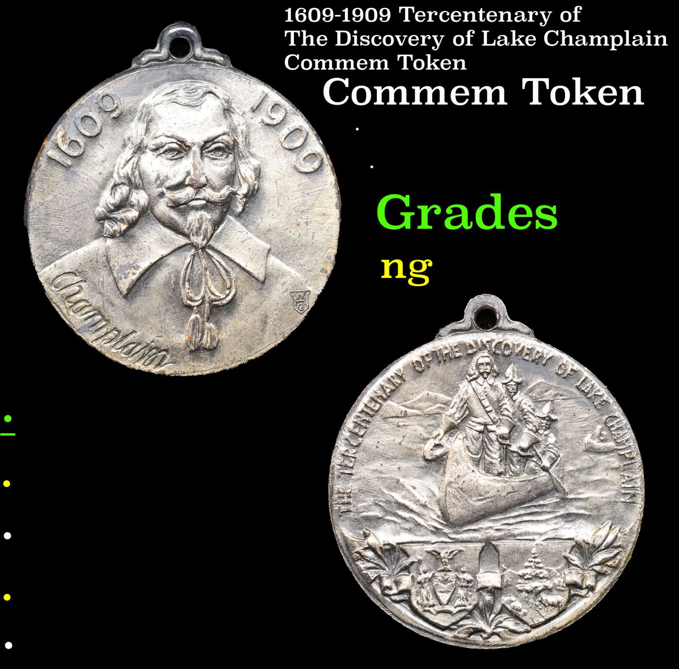 1609-1909 Tercentenary of The Discovery of Lake Champlain Commem Token Grades NG.