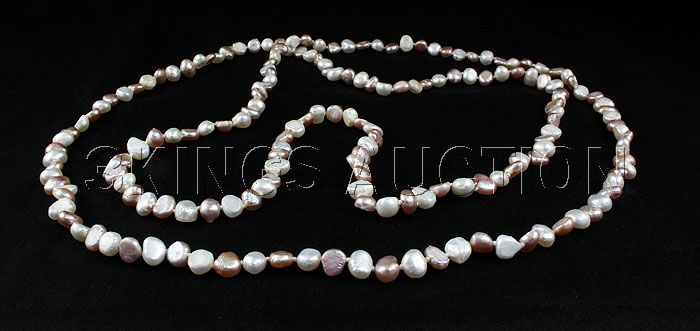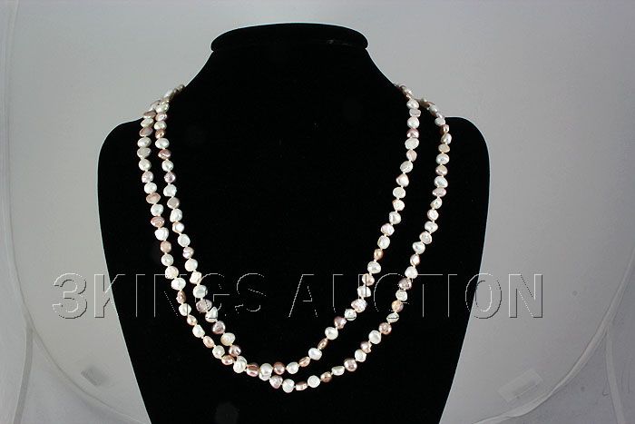 161.00CTW 16in. RICE PEARL WHITE-PEACH NECKLACE **|**|** 161.00CTW 16in. WHITE AND PEACH 7x8MM RICE PEARL NECKLACE WITH METAL BALL LOCK ; MSRP: $300