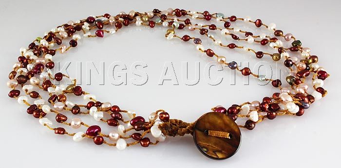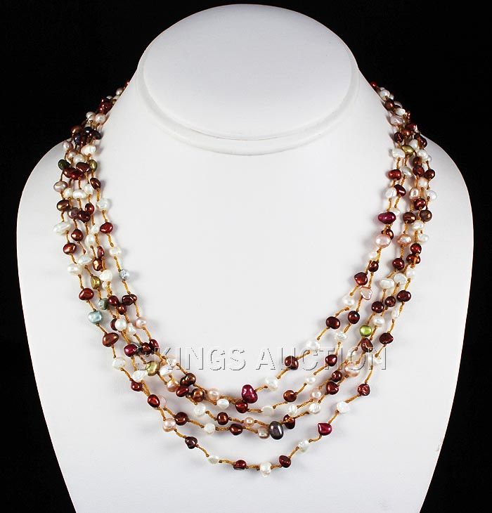 161.00CTW Multi Color Thread Freshwater Pearl Necklace **|**|** 19 inches Multi-color 5 Strand Thread Freshwater Pearl Necklace w/ Botton Lock ; MSRP: $300