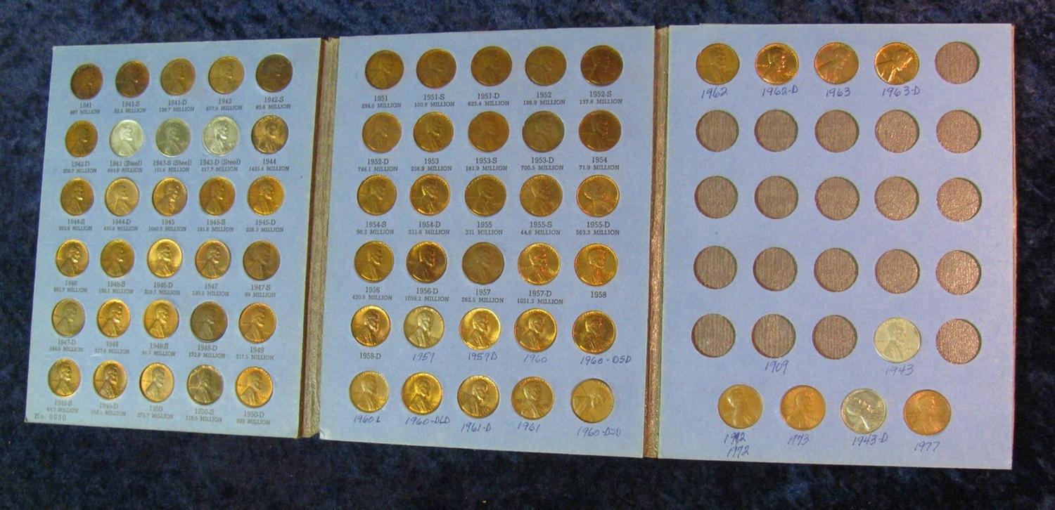 161. 1941-77 Partial Set of Lincoln Cents in a Whitman folder. (69 pcs.)
