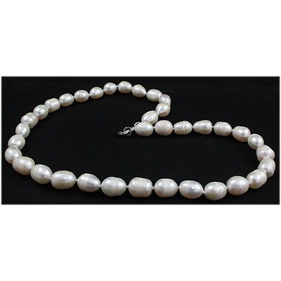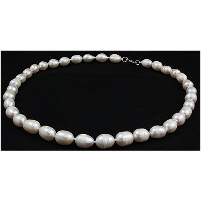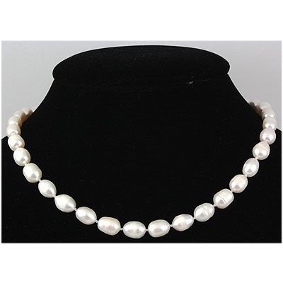 161.62 ctw Roval White Freshwater Pearl Necklace **|**|** Natural Freshwater Pearl Necklace 9-10mm Bit off Round-Oval = Roval Shape Hand Knotted 16" long ; MSRP: $300