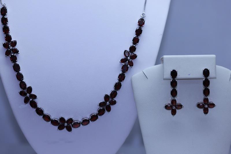 161.75 CTW GARNET NECKLACE AND EARRING SET .925 STERLIN **|**|** 161.75 CTW GARNET NECKLACE AND EARRING SET .925 STERLING SILVER ; MSRP: $1840