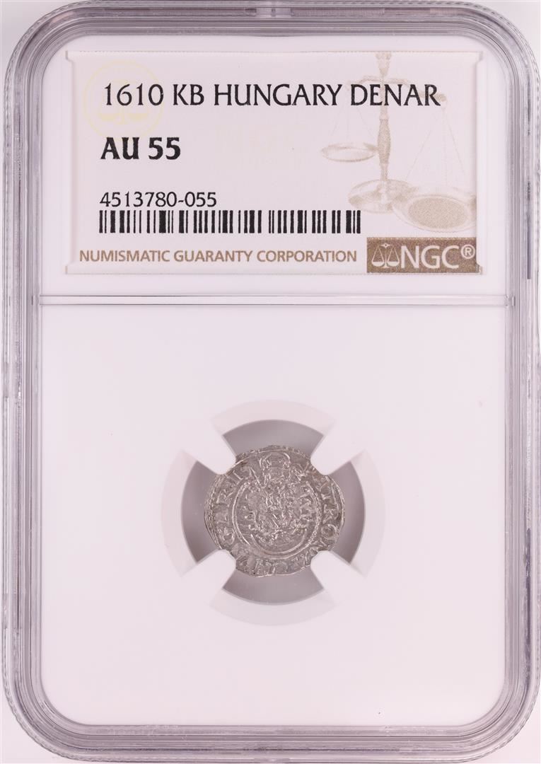 One 1610 KB Hungary Denar 'Madonna and Child' Coin NGC AU55. NGC Certified.