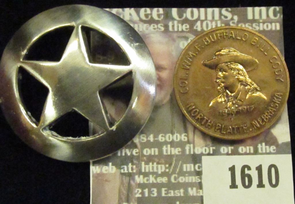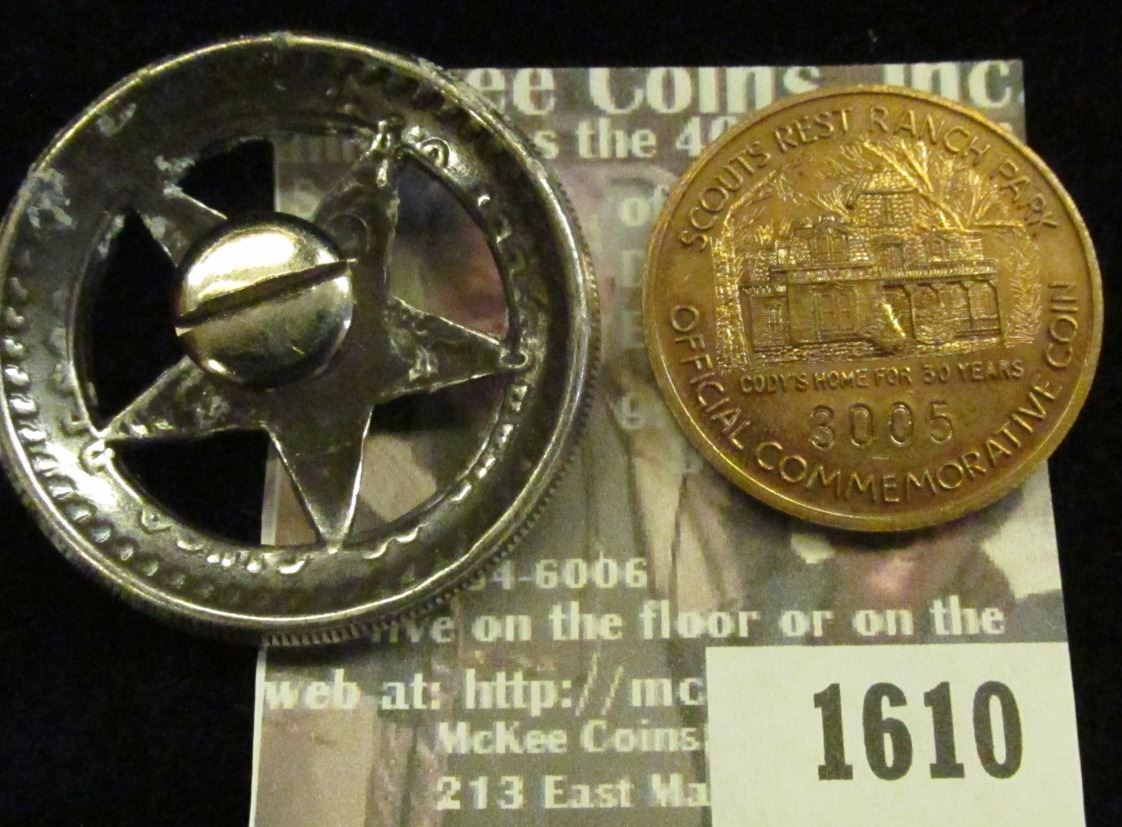 Star Concho with Screw Back & Col. Wm. F. Buffalo Bill Cody North Platte Nebraska, Scouts Rest Ranch Park, Official Commemorative Coin Sn #3005.