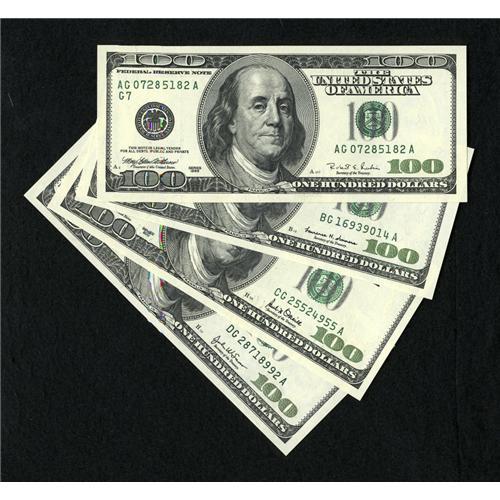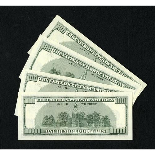 <B>Fr. 2175-G - Fr. 2178-G Quartet of $100 1996 Federal Reserve Notes. Gem Crisp Uncirculated.</B></I><BR>This big head quartet is a lovely group in terms of quality and eye appeal. Series 1996, 1999, 2001 and 2003 are all represented with only the more recent 2003A keeping the set incomplete.<BR><I>From The Bill and Kathy Stella Currency Collection</B></I><BR><BR><b>Shipping:</b> Coins & Currency (<a target="_blank" href="http://www.heritageauctions.com/common/shipping.php">view shipping information</a>)
