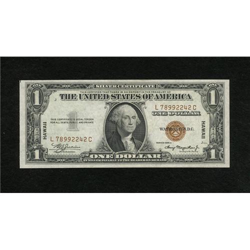 <B>Fr. 2300 $1 1935A Hawaii Silver Certificate. Very Choice Crisp Uncirculated.</B></I><BR>This well embossed and nicely margined example comes from the L-C block.<BR><BR><b>Shipping:</b> Coins & Currency (<a target="_blank" href="http://www.heritageauctions.com/common/shipping.php">view shipping information</a>)