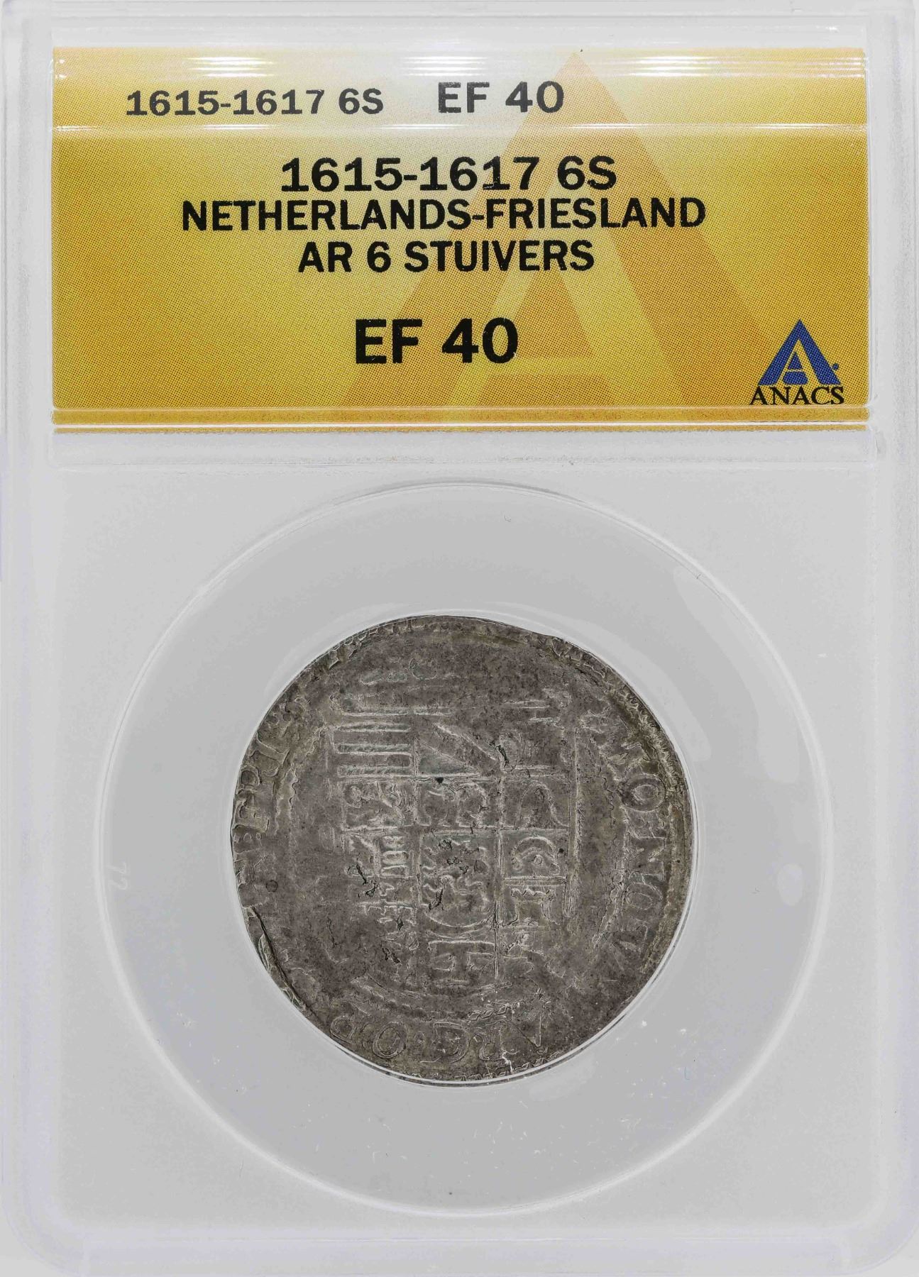 One 1615-1617 Netherlands-Friesland 6 Stuivers Coin ANACS XF40.