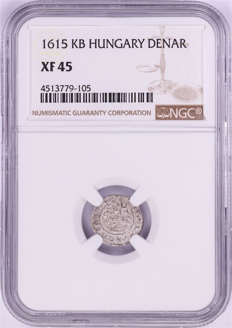 One 1615 KB Hungary Denar 'Madonna and Child' Coin NGC XF45. NGC Certified.