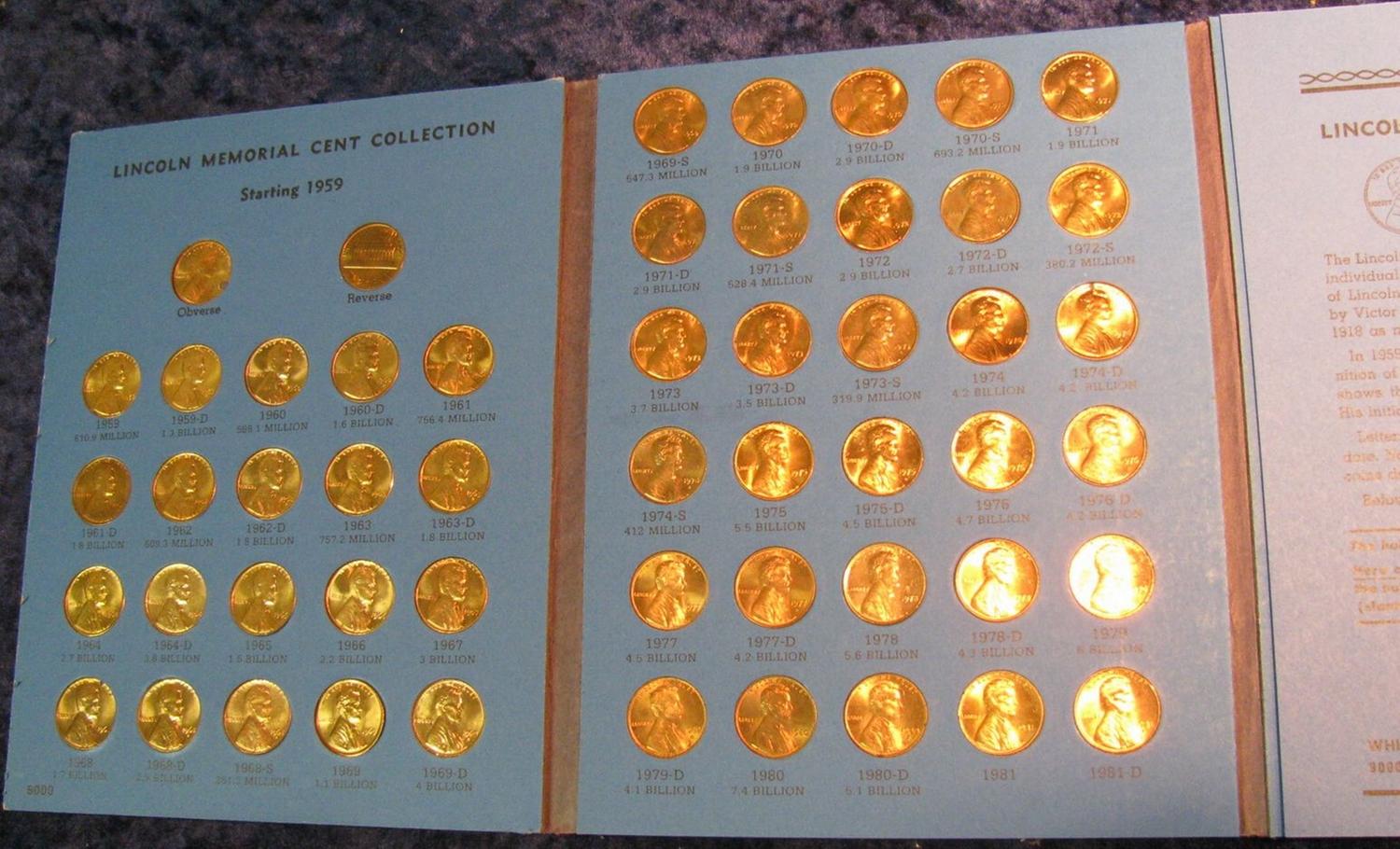 1617. 1959-81 Gem BU Lincoln Cent Set in Whitman folder. Contains 52 coins.