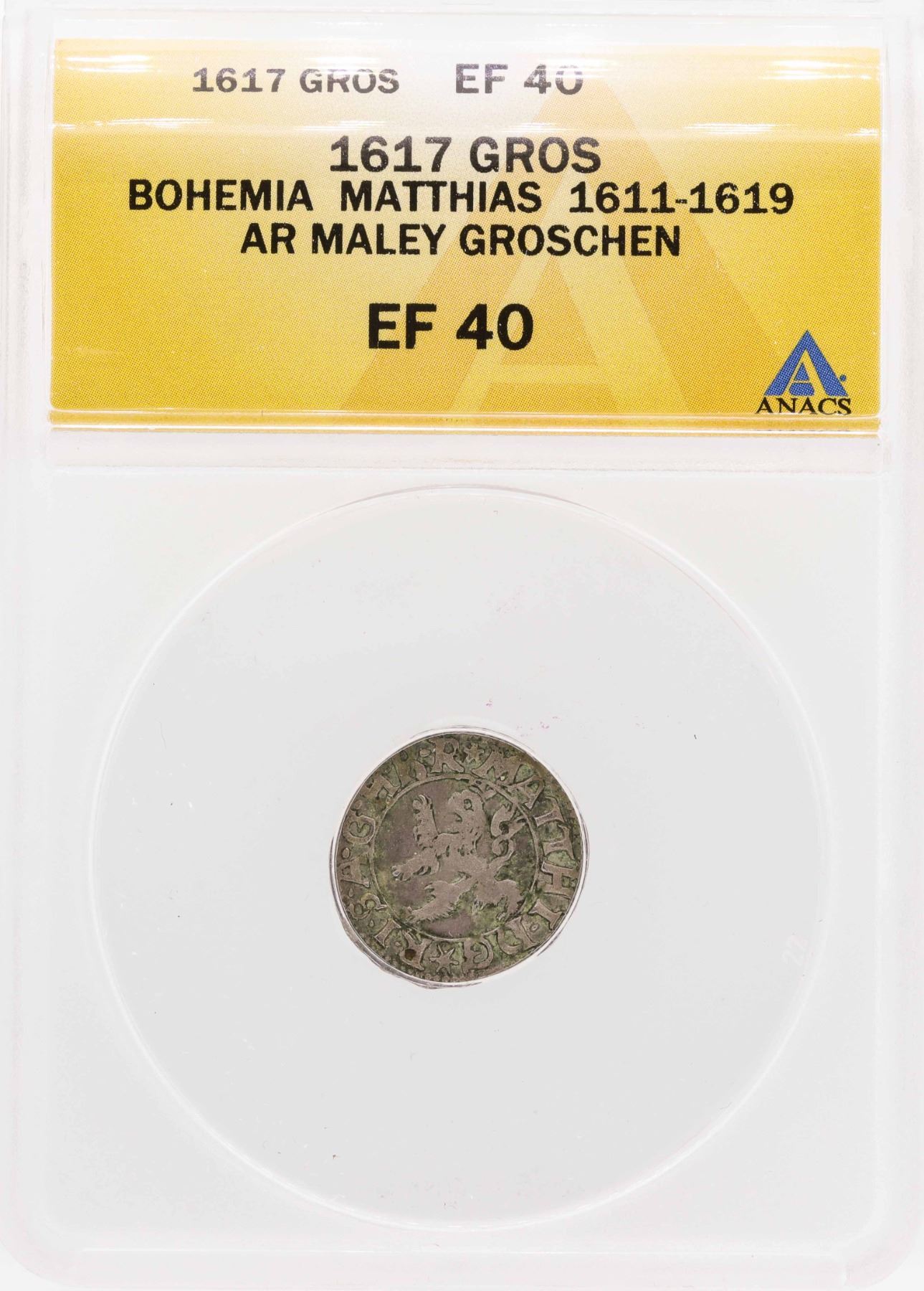 One 1617 Bohemia Matthias AR Maley Groschen Coin ANACS XF40.