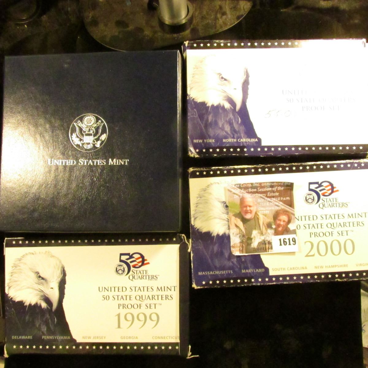 1619 . 1999 S, 2000 S, And 2001 S Proof Clad State Quarter Sets. T