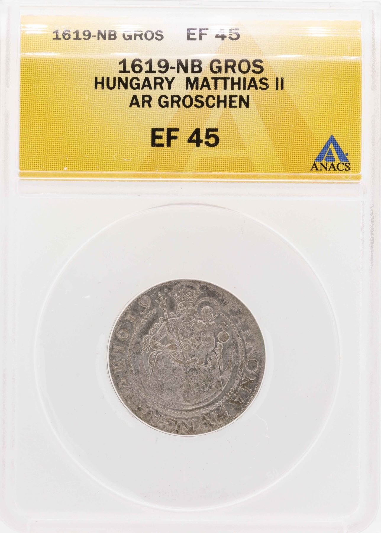 One 1619-Nb Hungary Matthias II AR Groschen Coin ANACS XF45.
