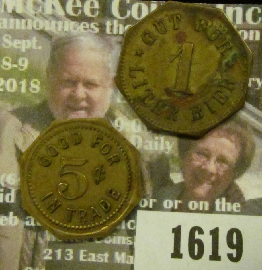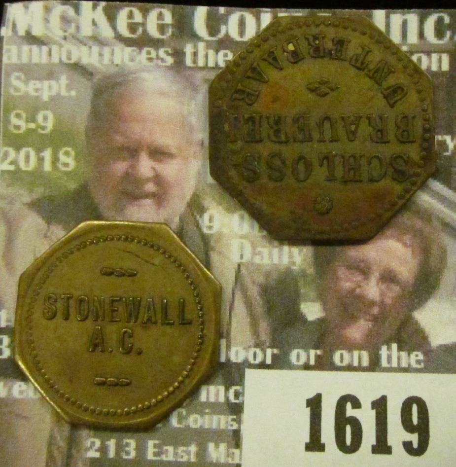 Stonewall A.C. Good For 5c in Trade & Schloss Brauerei Unterbaar Re. Gut Fur 1 Liter Bier. Good for Tokens