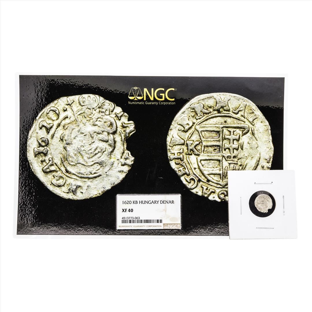 One 1620 KB Hungary Ferdinand I - Madonna & Child Silver Denar Coin NGC XF40. NGC Certified.