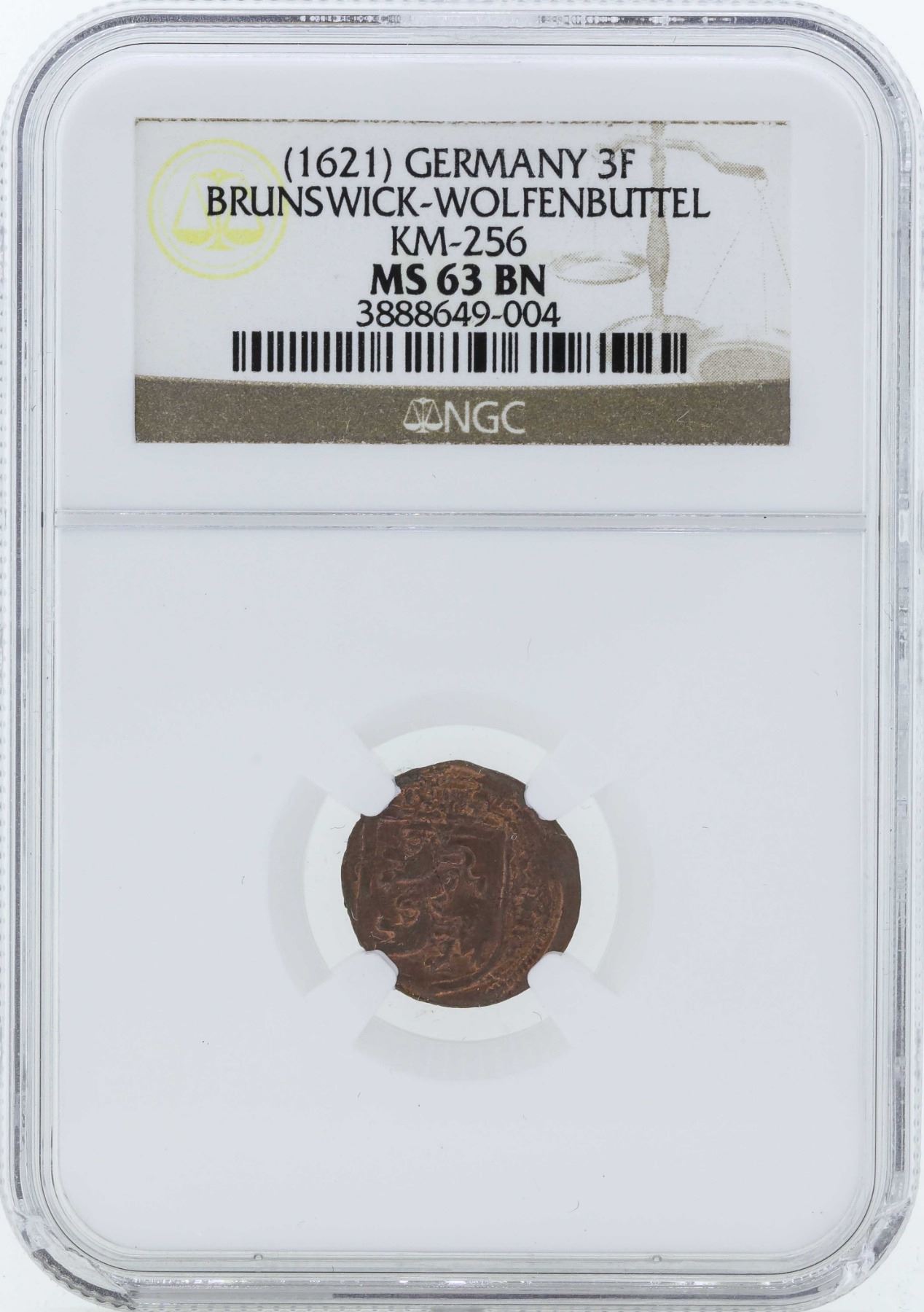 One 1621 Germany 3F Brunswick-Wolfenbuttel KM-256 Coin NGC MS63BN.