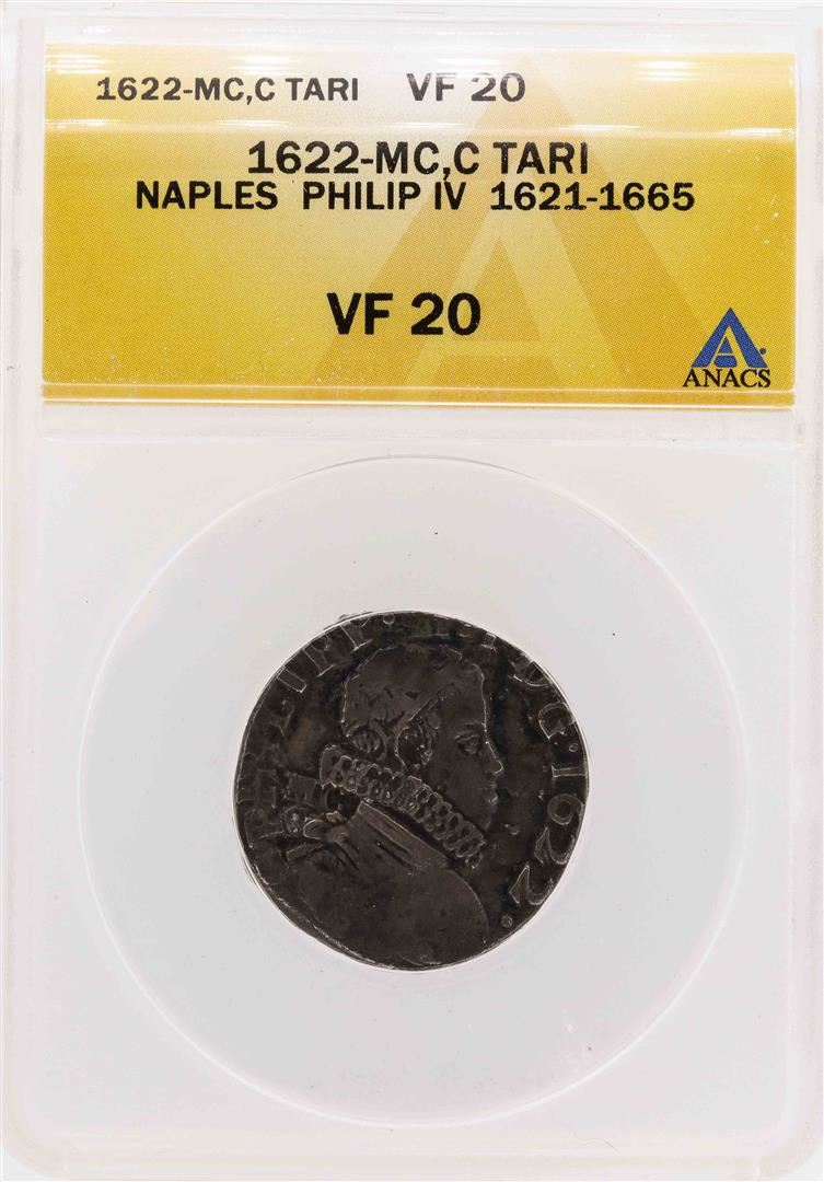 One 1622-MC C Tari Naples Philip IV Coin ANACS VF20. ANACS Certified.