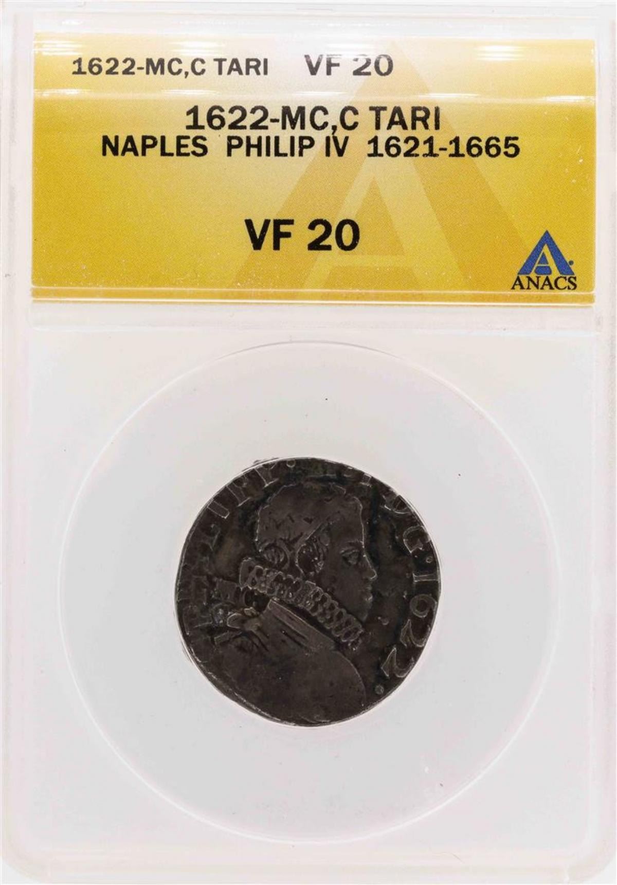 One 1622-MC C Tari Naples Philip IV Coin ANACS VF20.