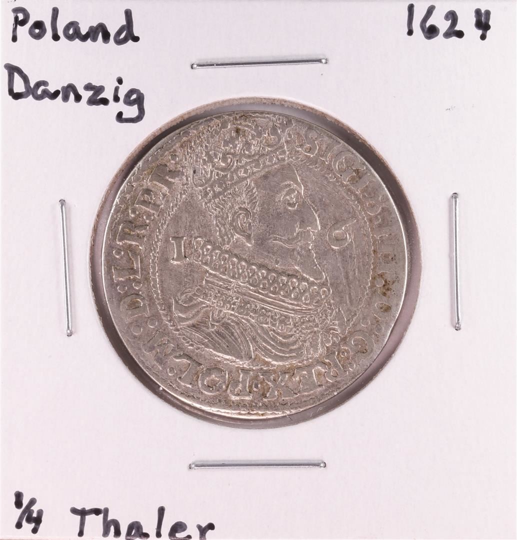 One 1624 Poland Danzig 1/4 Thaler Silver Coin.