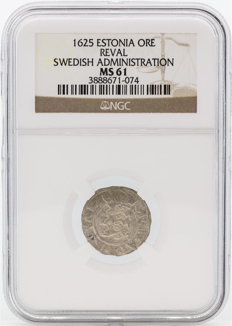 One 1625 Estonia Ore Reval Swedish Administration Coin NGC MS61. NGC Certified.