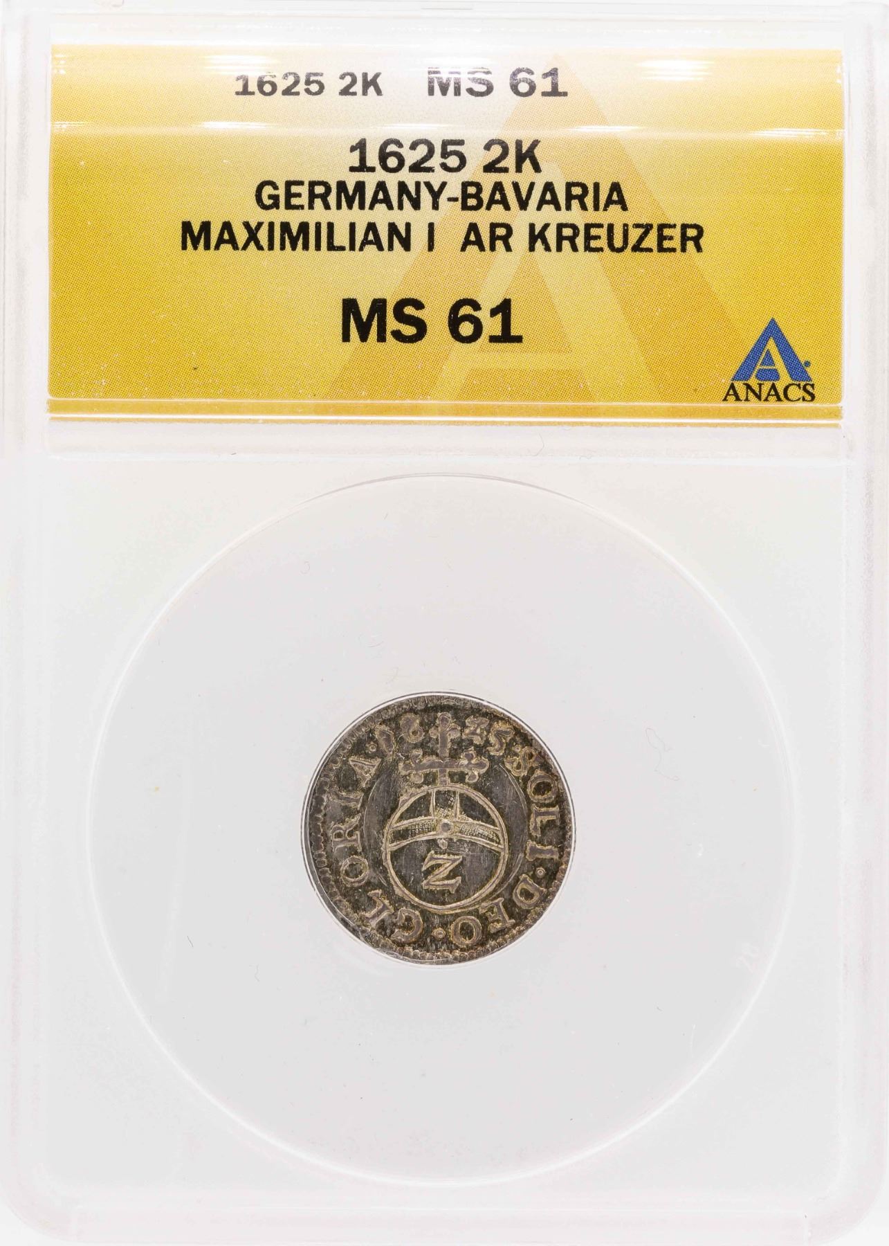 One 1625 Germany-Bavaria Maximilian I AR 2 Kreuzer Coin ANACS MS61.