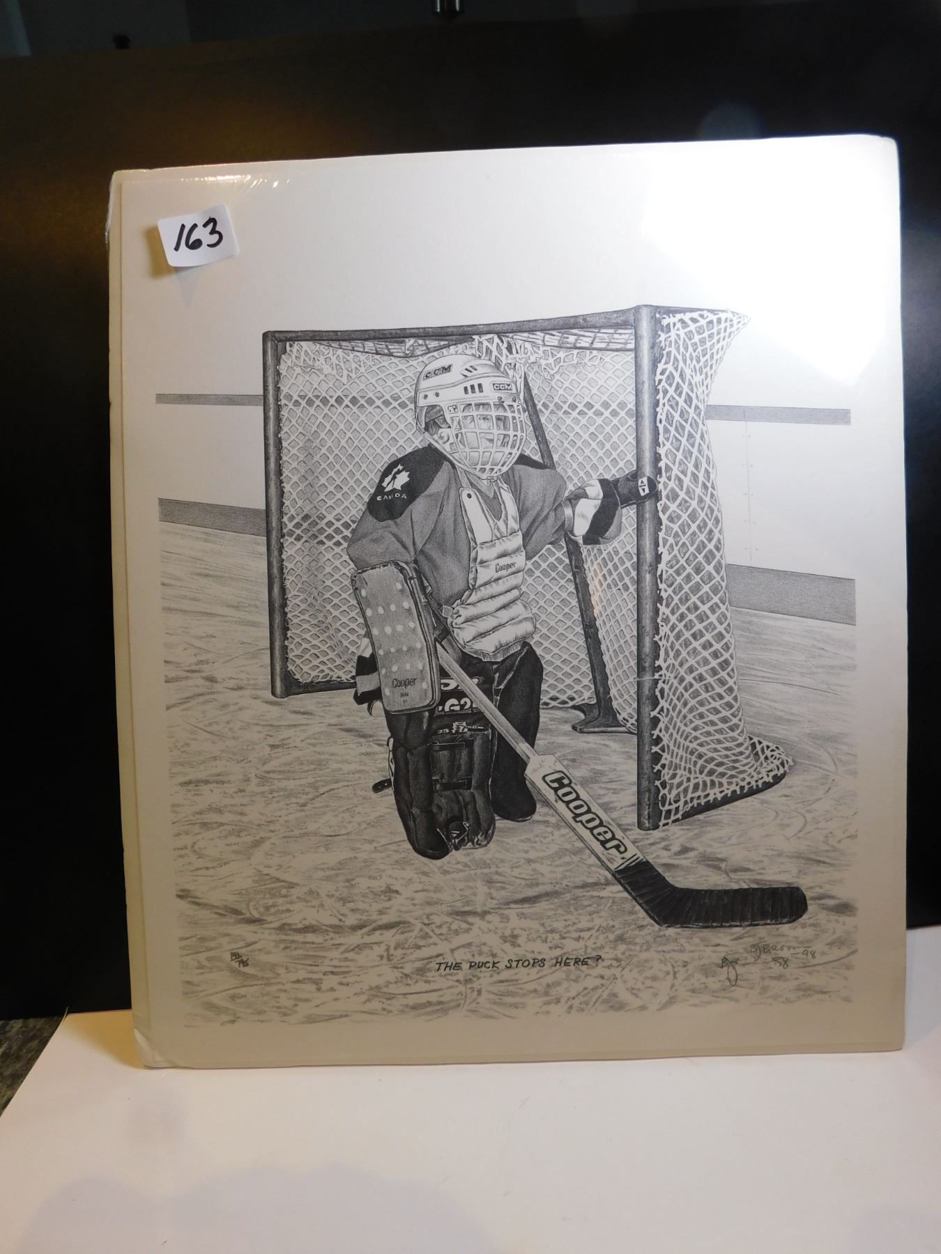 163. B J BROWN NUMBERED PRINT, PUCK STOPS HERE, 10" X 12"
