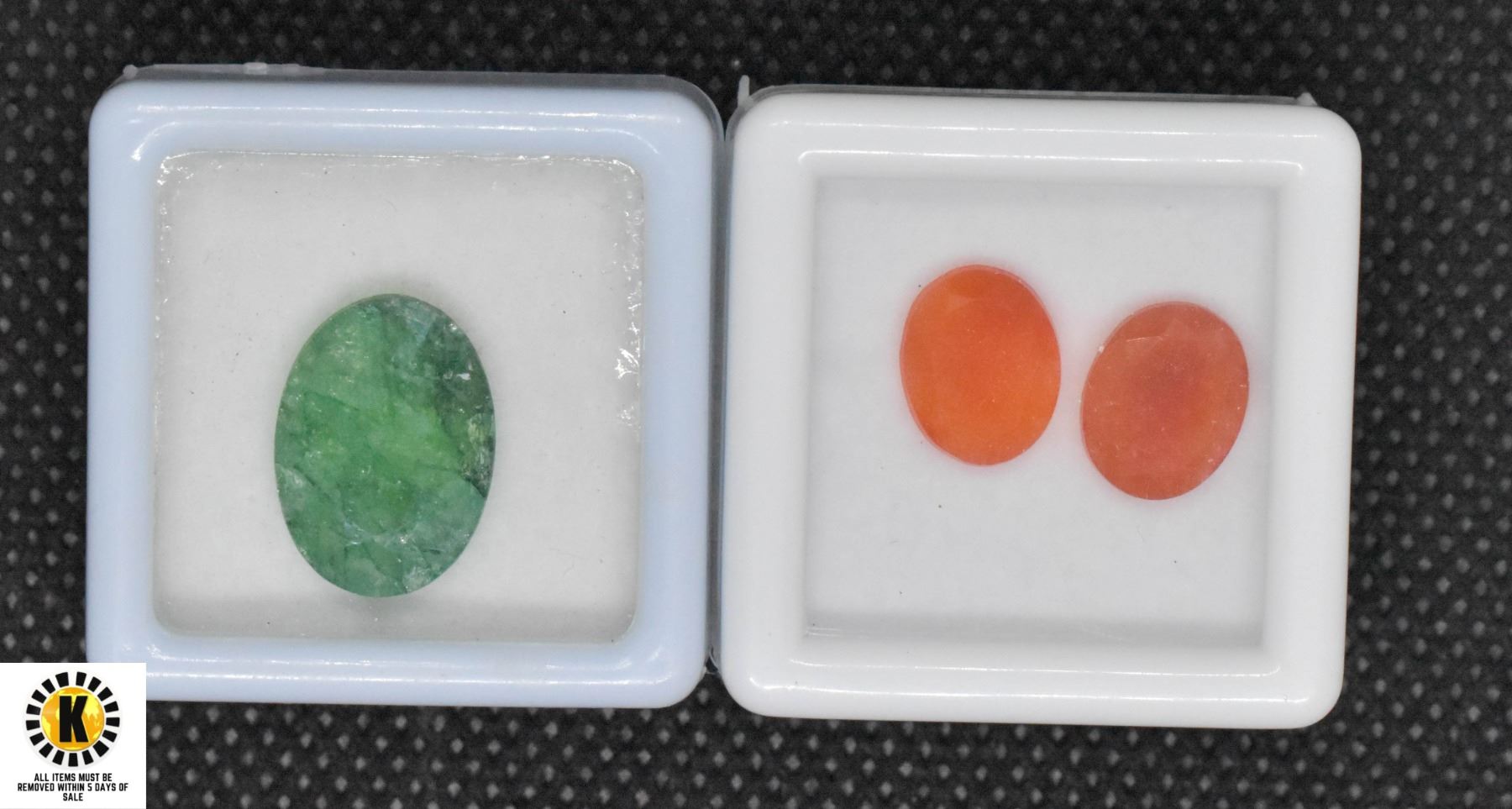 UNTREATD/ CAMELIAN 7.8 X 9.7 MM /UNHEATED EMERALD 10 .6 X 14.7MM