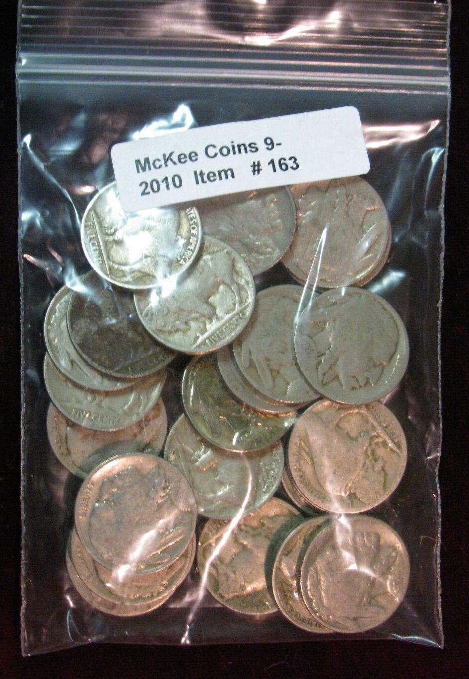163. Roll of (25) Mixed Date Buffalo Nickels. Average circulated.
