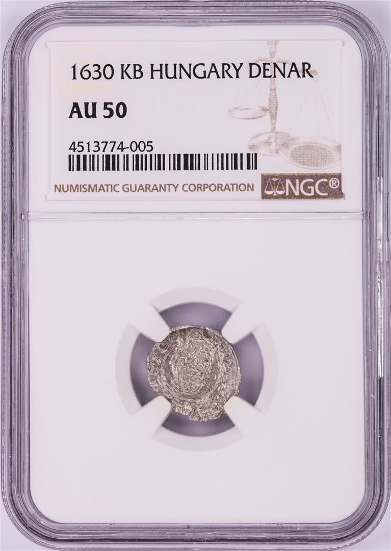 One 1630 KB Hungary Denar 'Madonna and Child' Coin NGC AU50. NGC Certified.