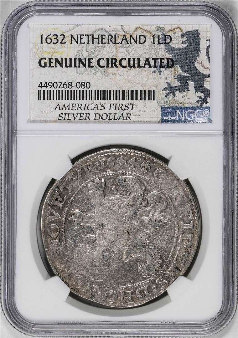 One 1632 Netherland Dutch Lion Daalder Silver Coin NGC Genuine Circulated. NGC Certified.