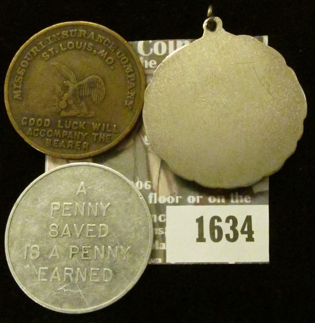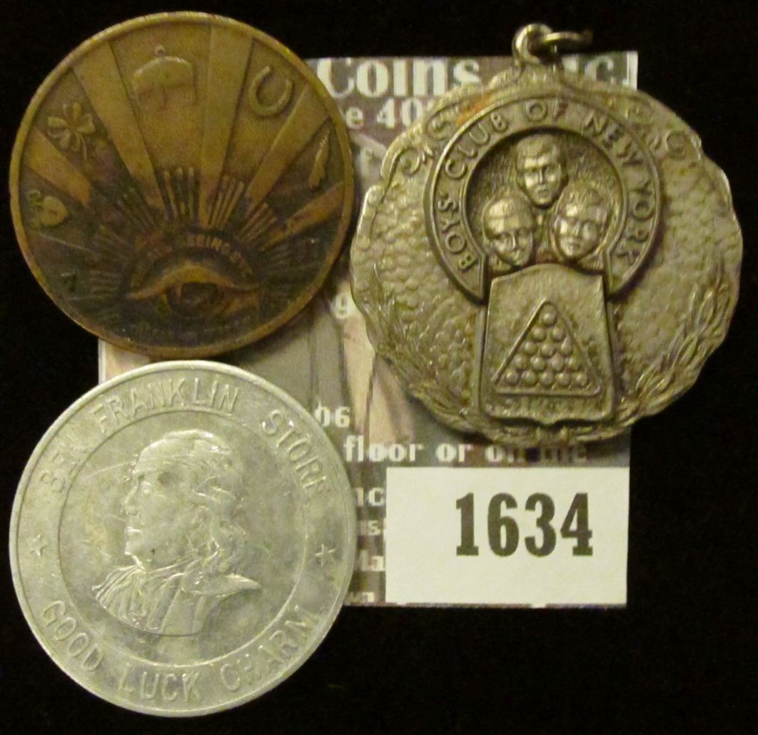 Boys Club of New York, Hanging Medal, Missouri Insurance Co. St. Louis. Good Luck medal & Ben Franklin Store, Good Luck Charm.